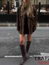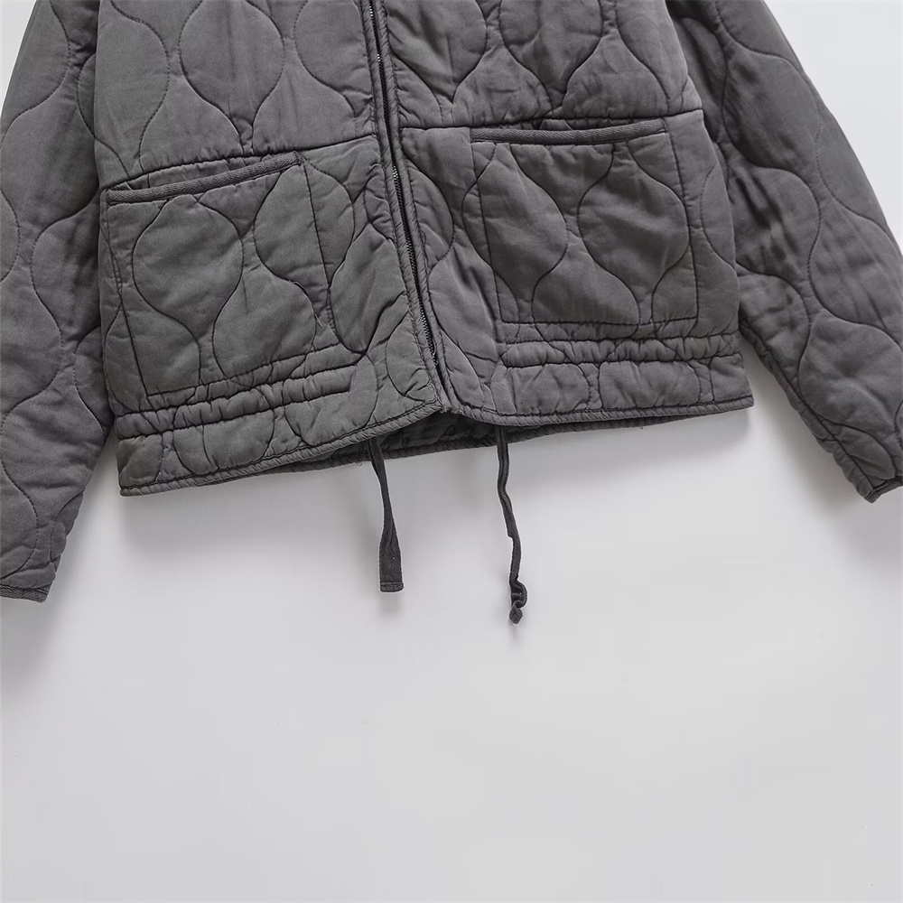 UNIZERA 2024 Autumn New Product Fashion Casual Women’s Stand up Collar Long Sleeve Loose Pocket Decoration Cotton Coat