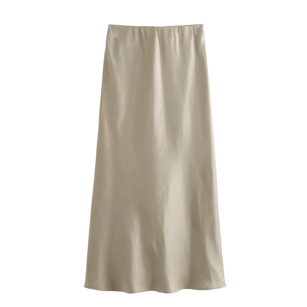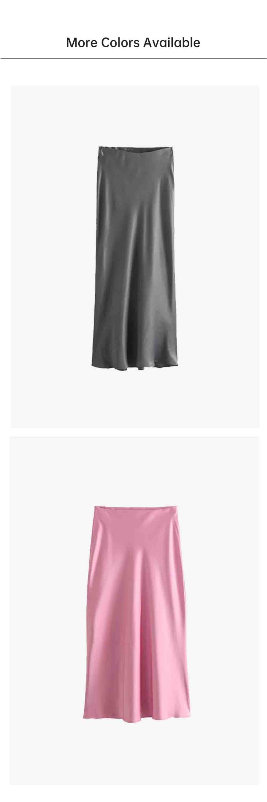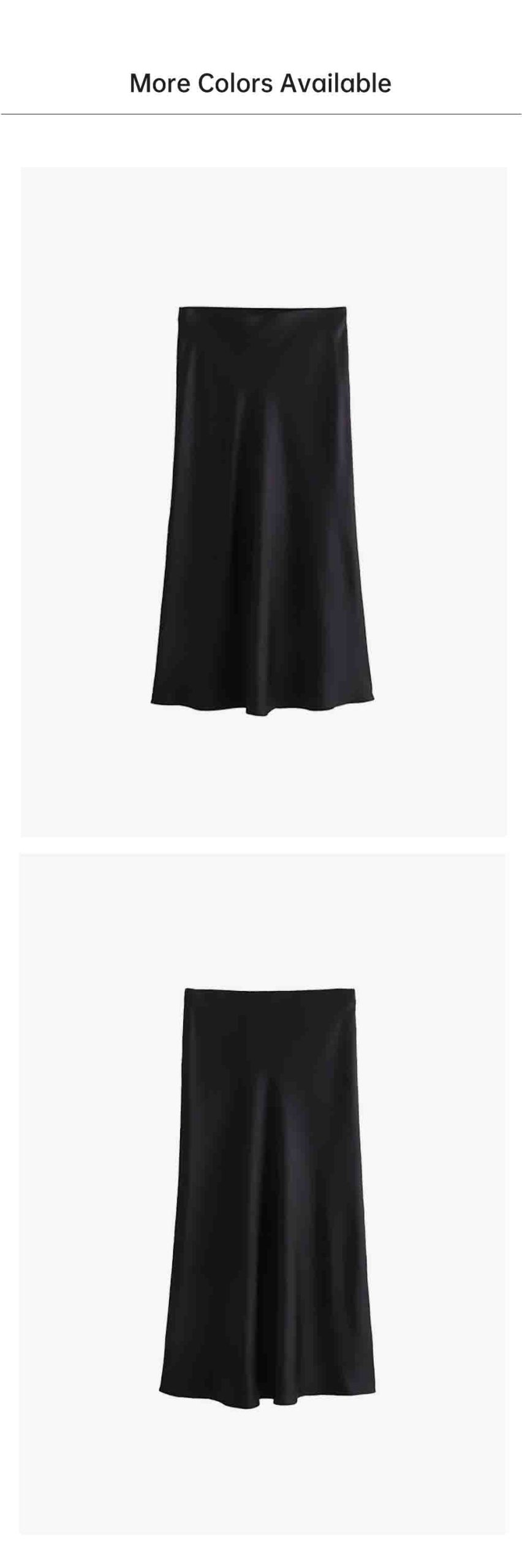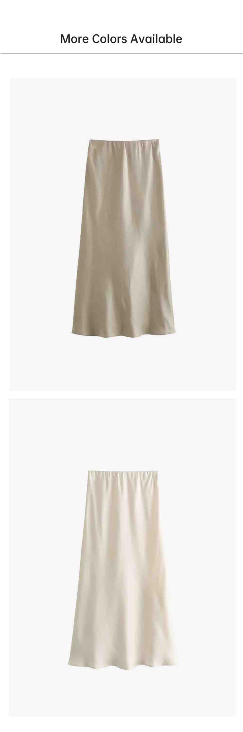 2 reviews for UNIZERA2024 summer new casual women’s clothing simple and fashionable high waisted slim fit silk satin texture MIDI skirt