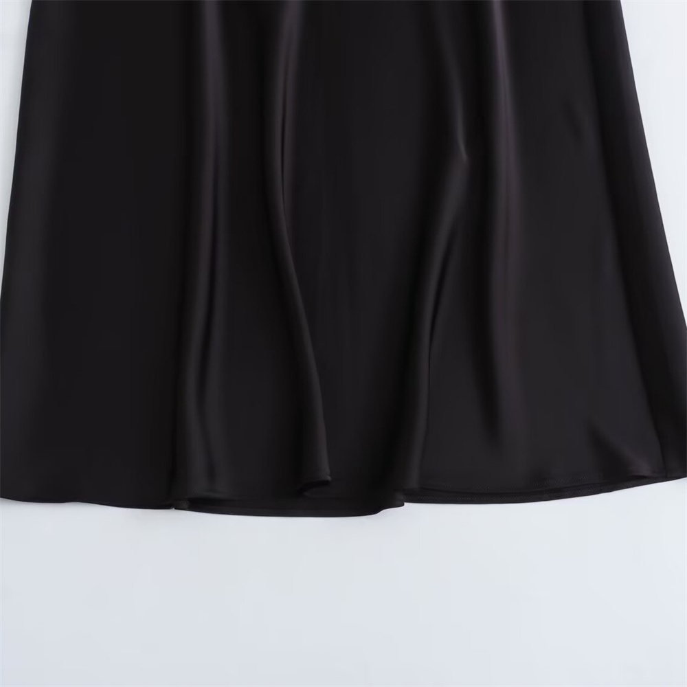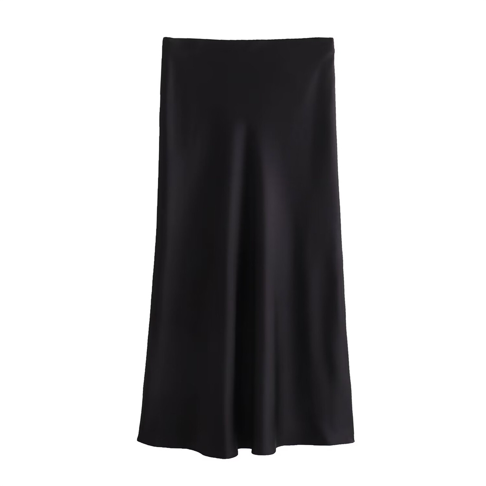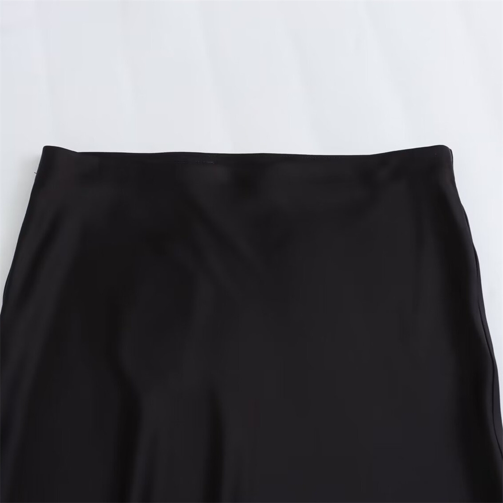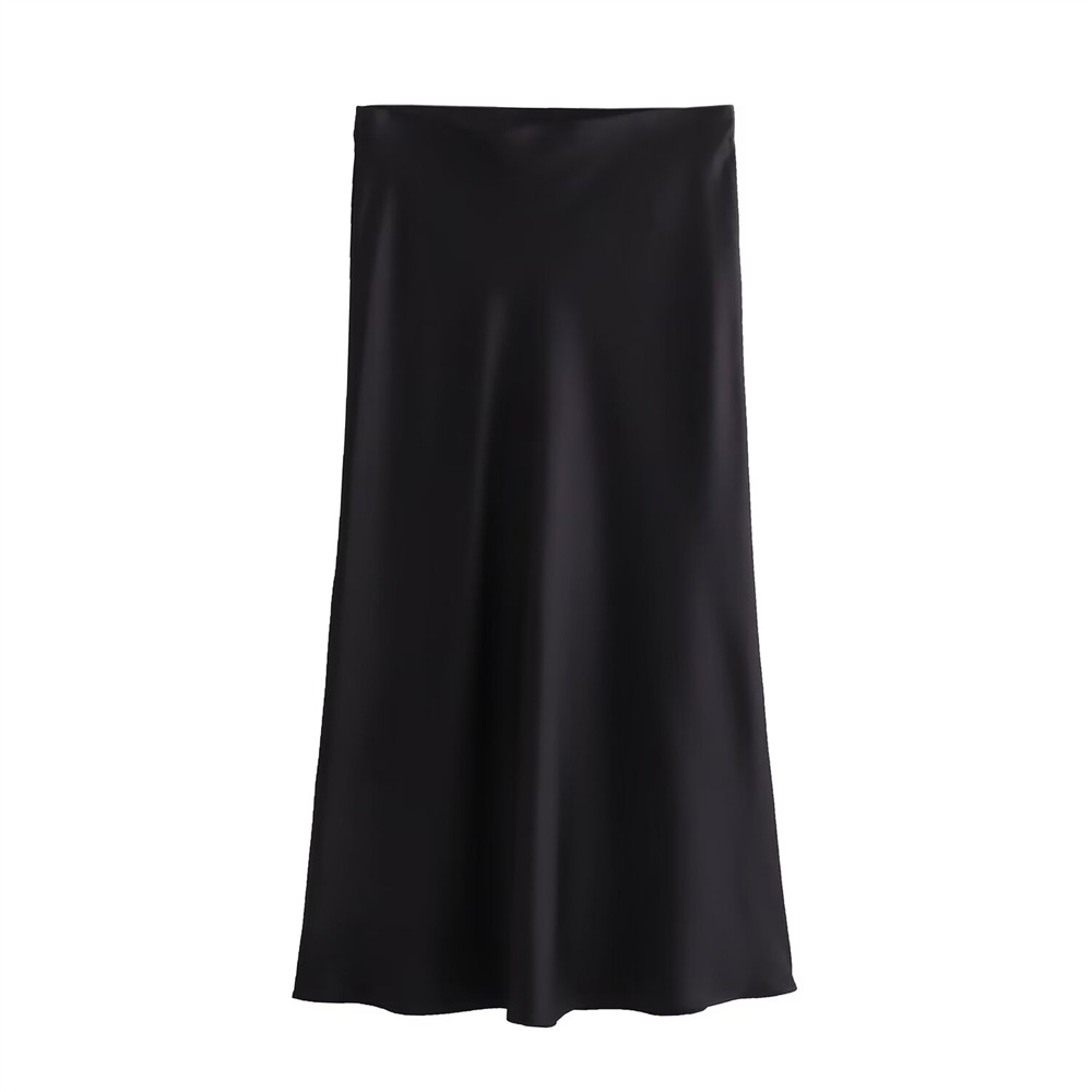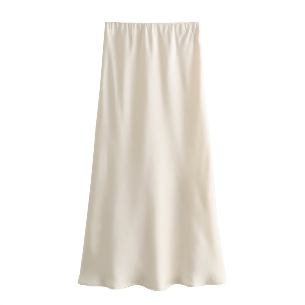 2 reviews for UNIZERA2024 summer new casual women’s clothing simple and fashionable high waisted slim fit silk satin texture MIDI skirt