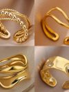 Uworld Chic Stainless Steel Personality Minimalist Classy Ring 18k Gold Color Stylish Unique Finger Jewelry for Women Waterproof
