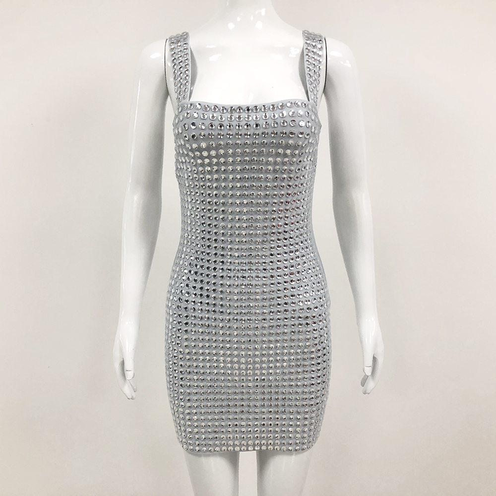 VC 2024 Summer New Women’s Sexy Sleeveless Diamond Lace Up Mini Dress Shiny Crystals Bodycon Celebrity Club Party Cocktail Dress