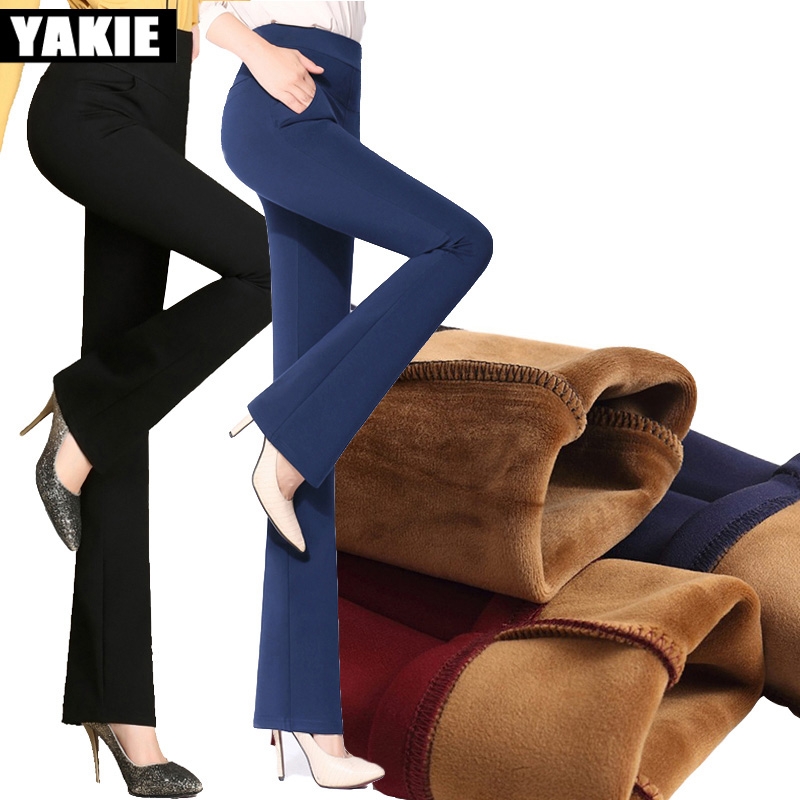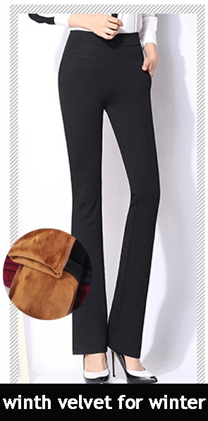 Vintage Office skinny Women Pants Trousers Zipper High Waist Pocket Flare pants formal OL Office Career Capris Work Wear Black