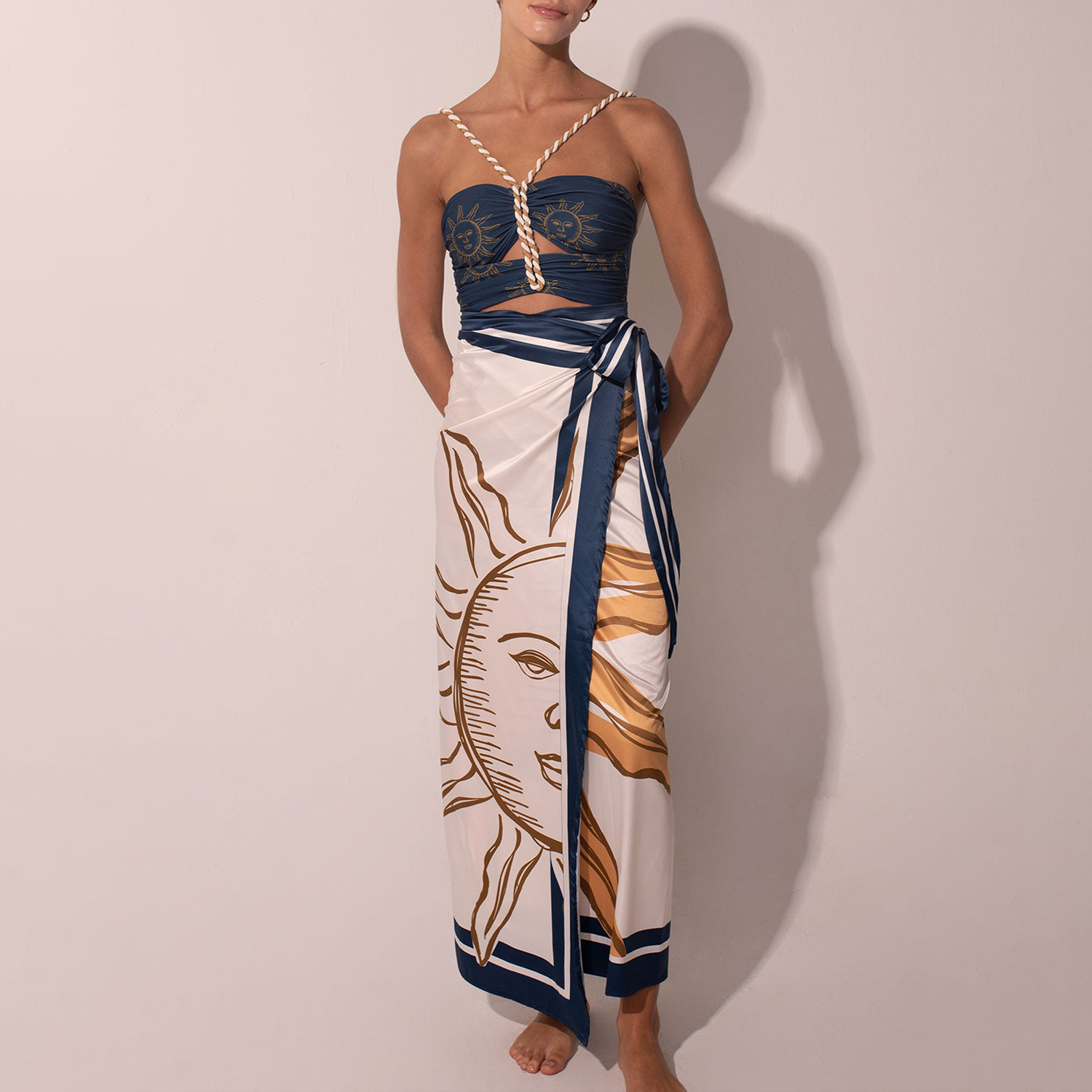 Vintage Printed One Piece Swimsuit and Cover Up for Women Fashion Vacation Bikini Elegant Bathing Beachwear Luxury Swimwear 2024