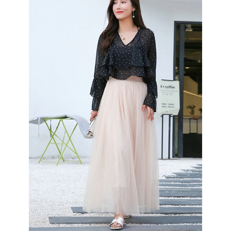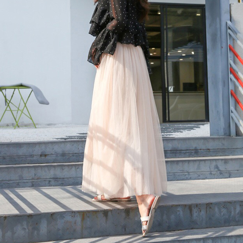 2 reviews for Vintage Tulle Skirt Women Streetwear Elastic High Waist Mesh Pleated Skirts Summer Elegant Korean A Line Office Ladies Skirt New
