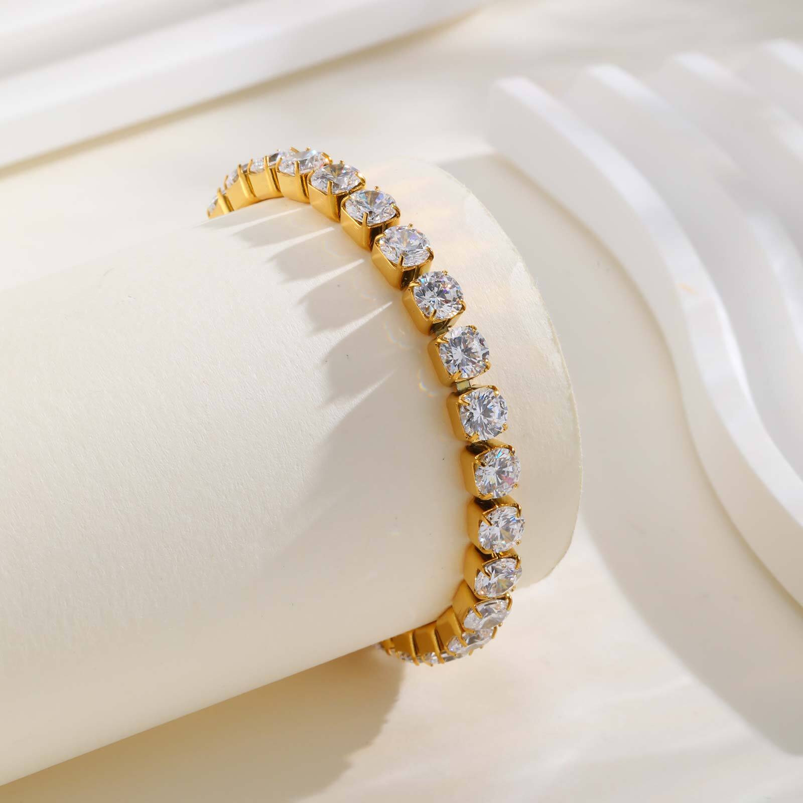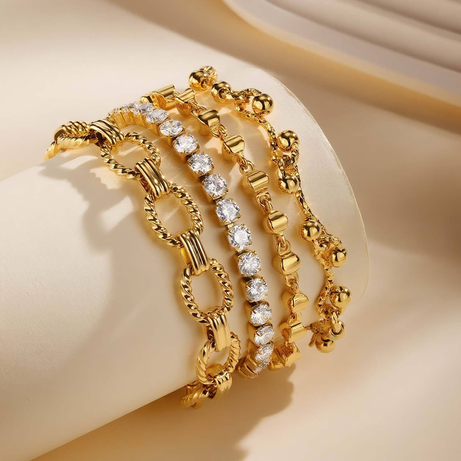 Vnox Classic Versatile Gold Plated Bracelet For Women, Stainless Steel Adjustable Chain, Fashion Brand Jewelry Crystal Bangles