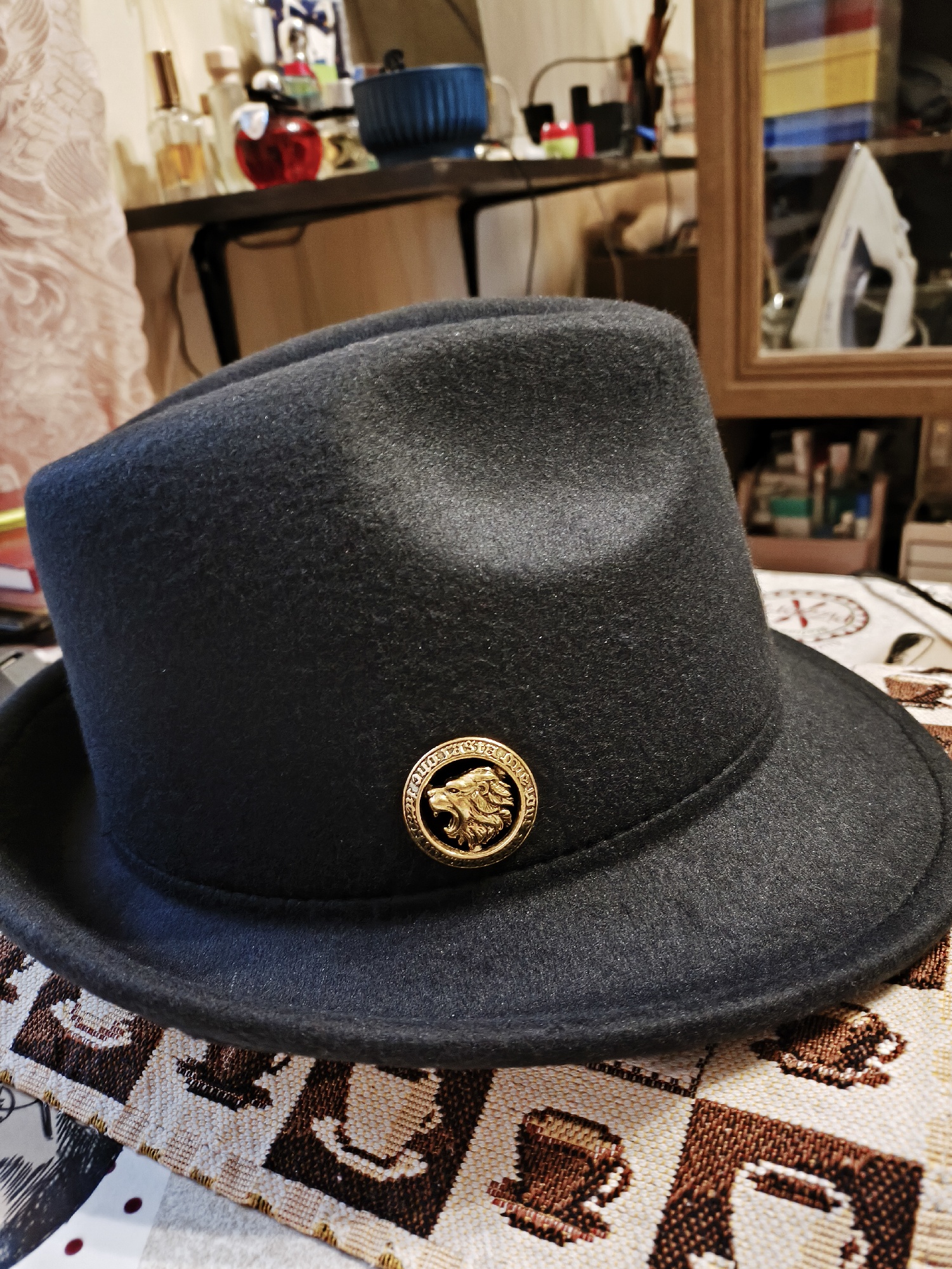 шляпа в подарок. отлично упакована! значок сама прикрепила