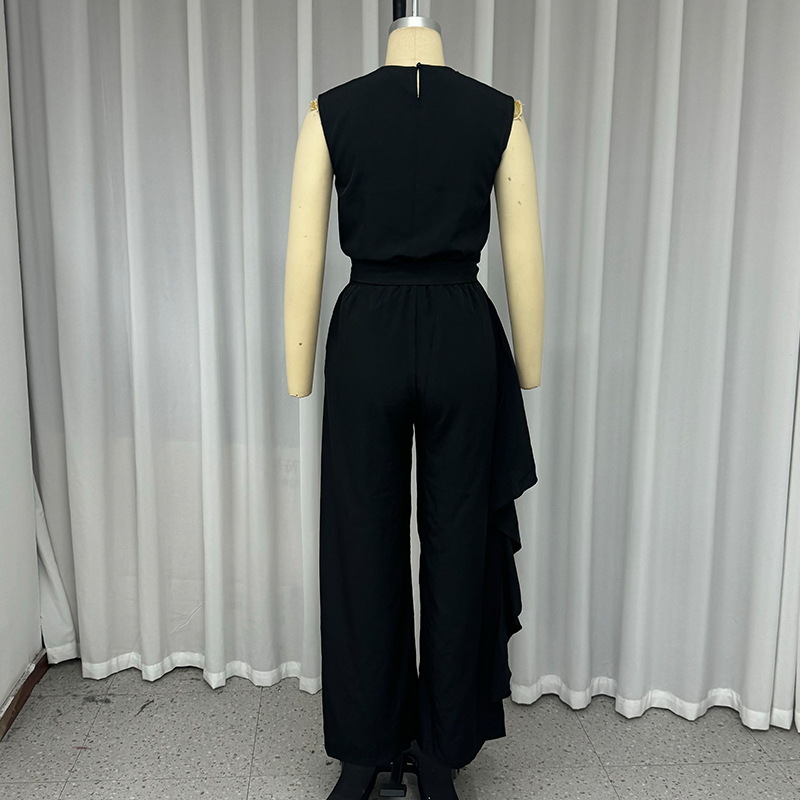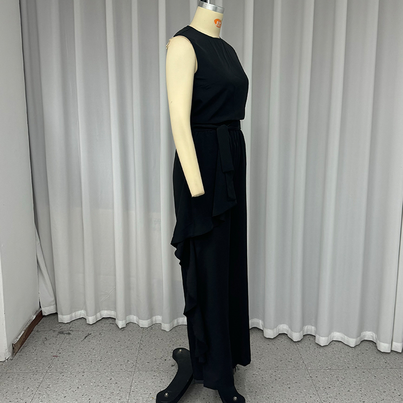 2 reviews for Wefads 2 Piece Set Women Fashion Casual Round Neck Solid Sleeveless Pullover Top Loose With Ruffled Pants Sets High Streetwear