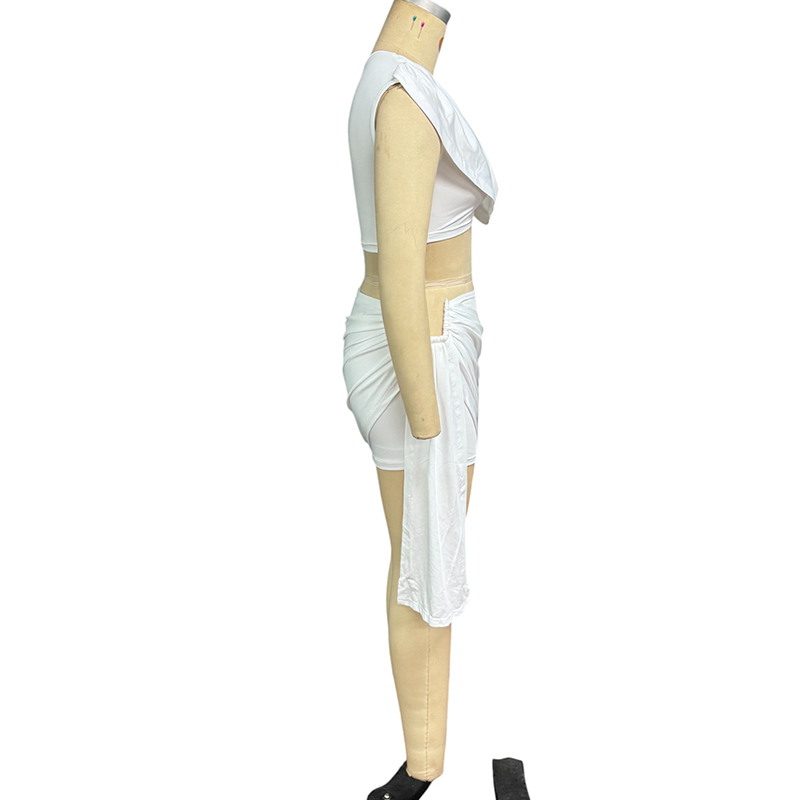 Wefads 2 Piece Set Women Summer Sexy Fashion Solid Sleeveless V Neck High Waist Tank Top A Line Irregular Pleated Mini Skirt Set