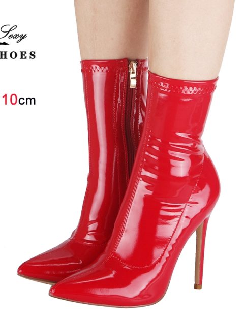 10CM Women Ankle Boots Side Zipper Thin Heels Short Boot Glossy Patent Leather High Heels Office Autumn Shoes For Woman Footwear