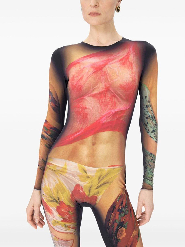 Weird Puss Colorful Print Jumpsuit Women Sexy o-Neck Full Sleeve Skinny Peach Hip Hot Girls Street Fashion Wild Style Overalls