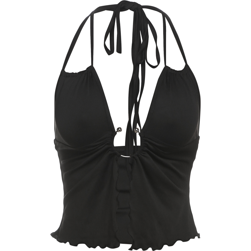 2 reviews for Weird Puss Irregular Hollow Sexy Camisole Women Lace-Up Halter Backless Ruched Ruffles Hem Hot Girls Street Hipster Tank Tops