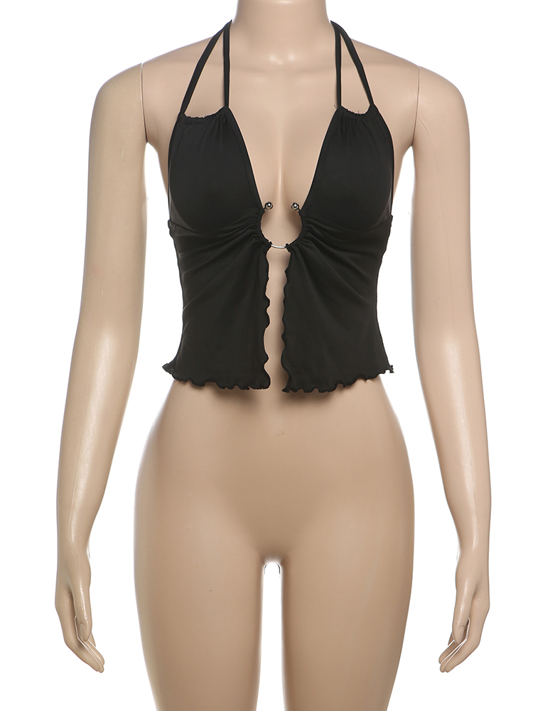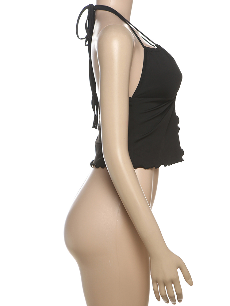 Weird Puss Irregular Hollow Sexy Camisole Women Lace-Up Halter Backless Ruched Ruffles Hem Hot Girls Street Hipster Tank Tops