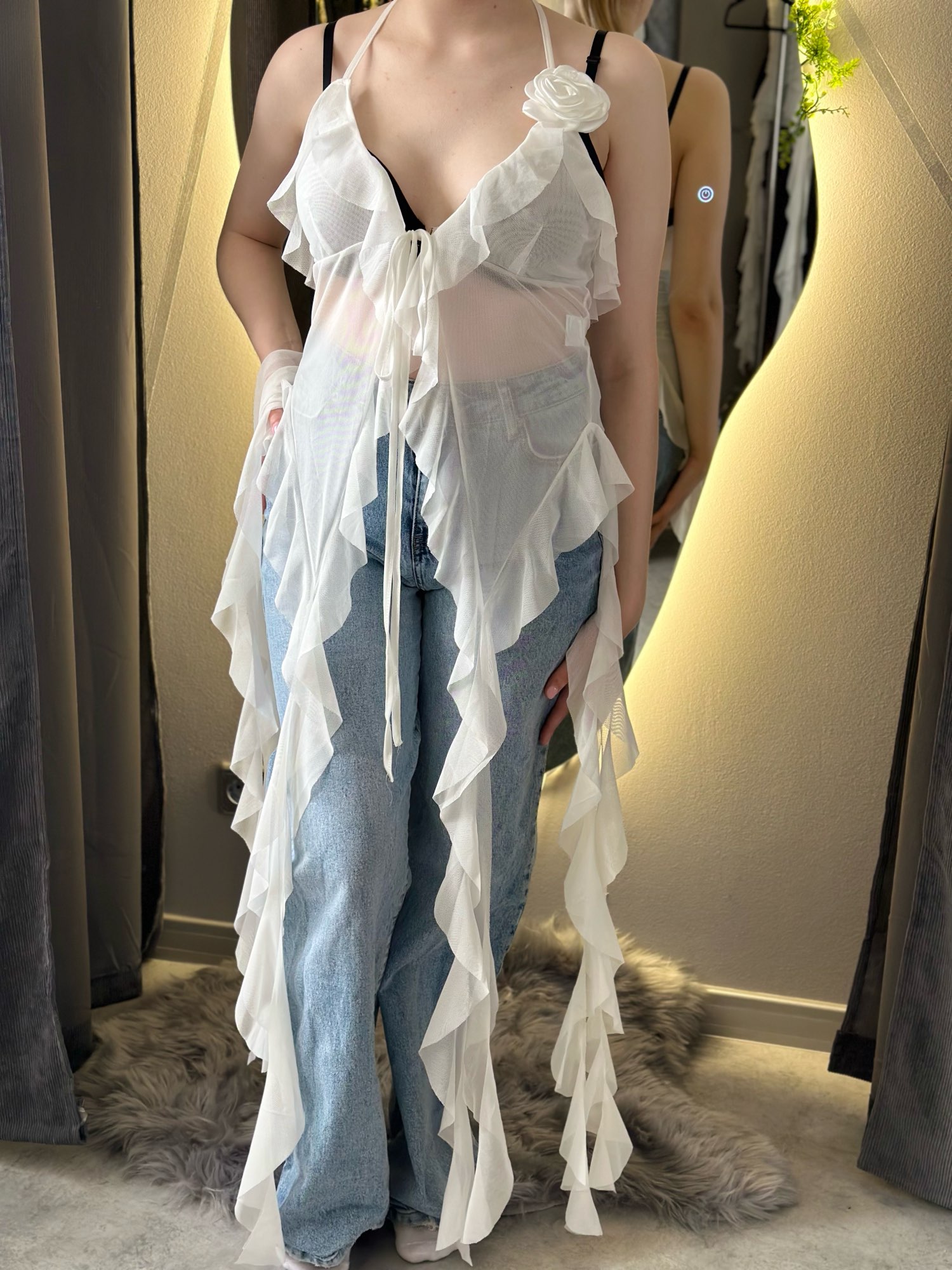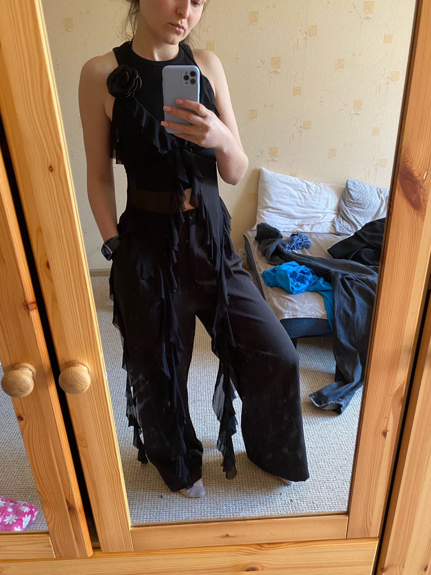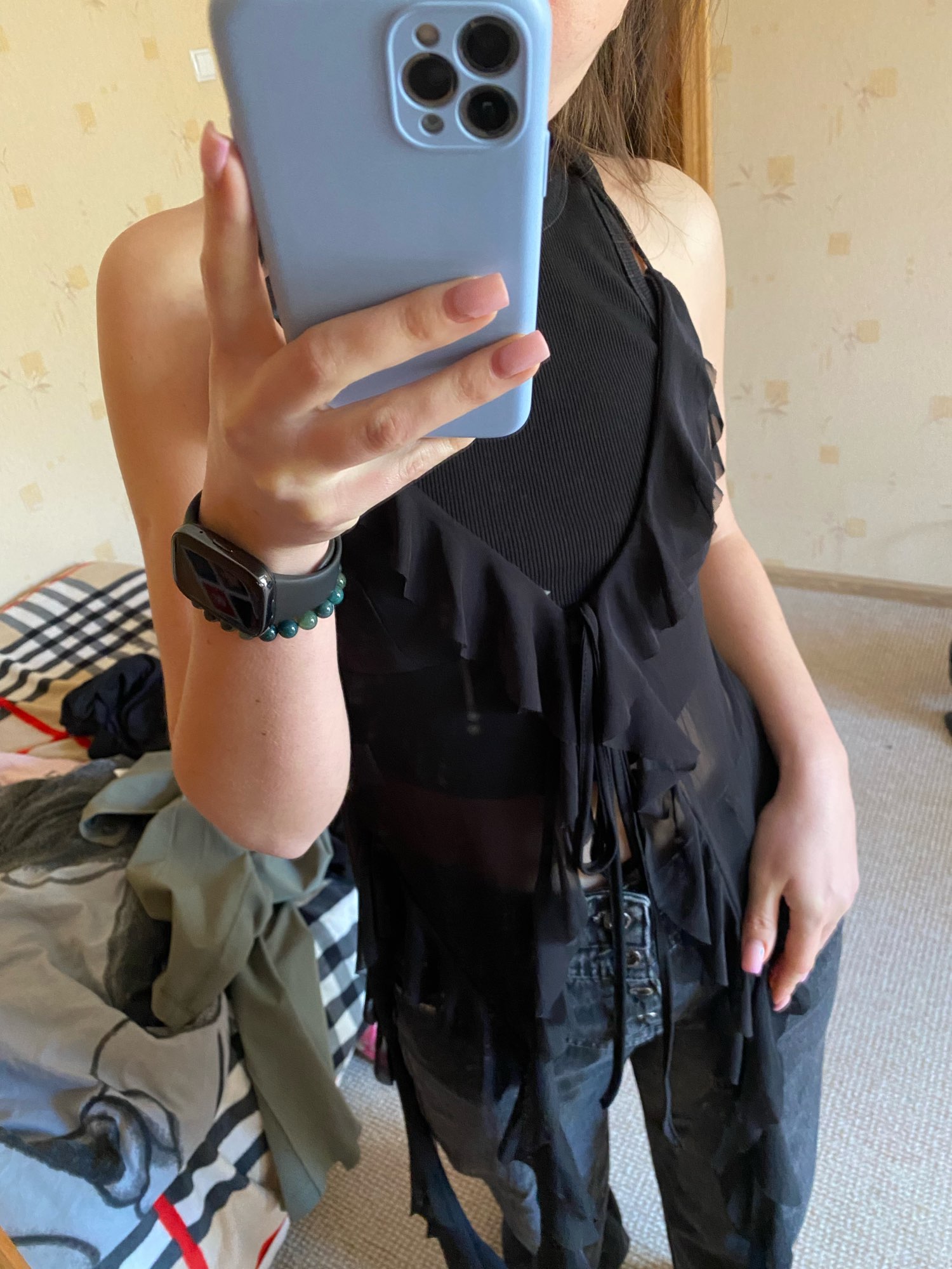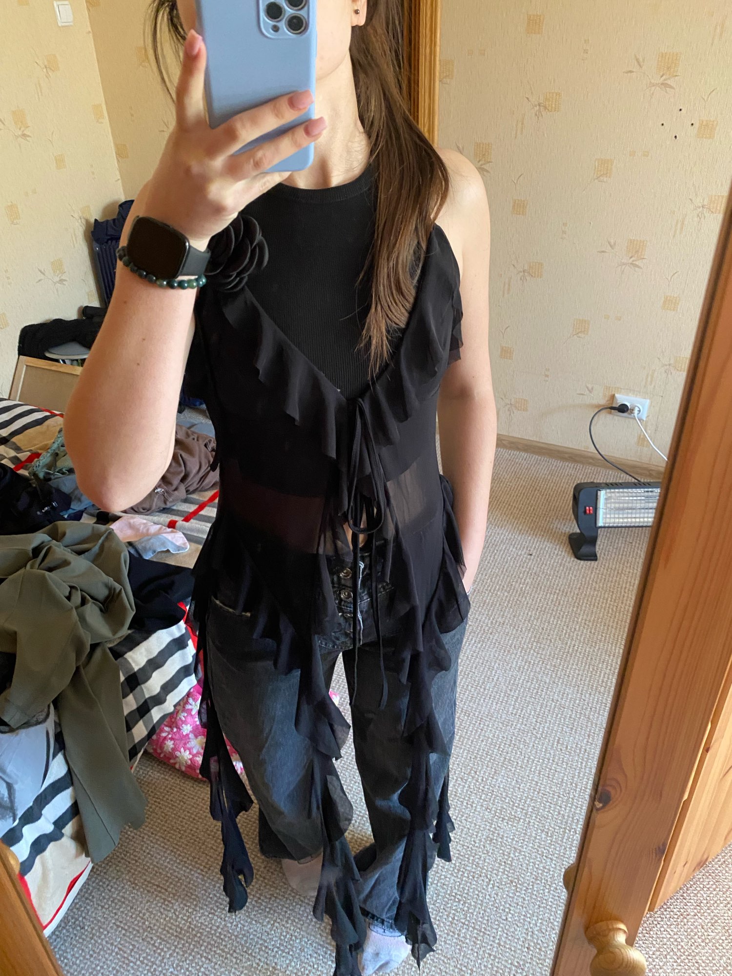 Симпатичная штука, особенно подойдет тем у кого плоская попа, слишком узкие бедра-рюши визуально добавляют обьем в области бедер. У меня бедра широкие-вот кручу теперь как носить этот топ и выдержать фигуру в балансе, но это не претензия к товару, чисто по типу фигуры неправильно подобрала одежду, а топ хороший, рекомендую.
