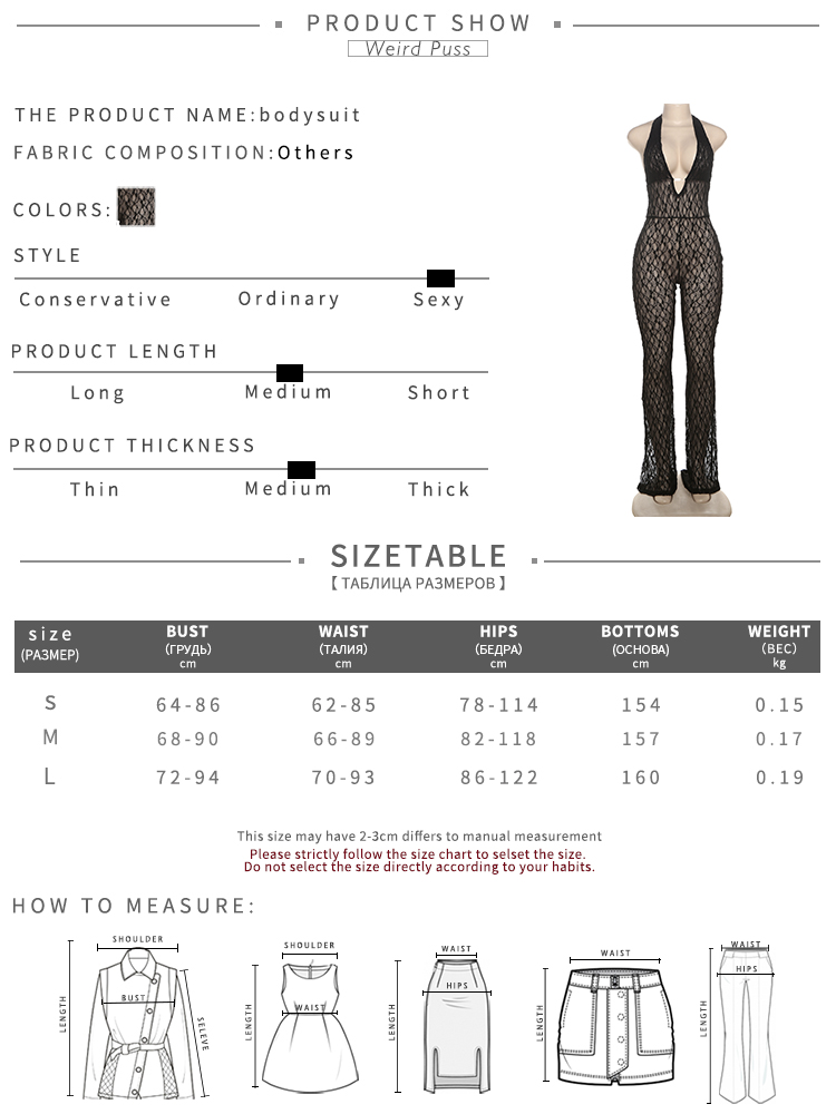 2 reviews for Weird Puss Sexy Mesh Halter Jumpsuit Women Backless Skinny Low-Neck Midnight Birthday Party Clubwear Activity Workout Overalls