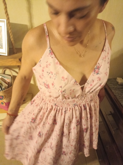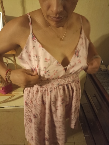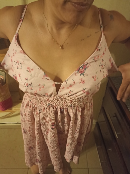El vestido y la tela son muy bonitos, solo que creo que es muy amplio. Soy talla chica normalmente y esa pedí y lo sentí muy grande de todos lados. Es bonito Pero muy grande!
