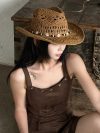 Western Style Straw Hats Vintage Curled Edge Cowgirl Jazz Hat Summer Beach Sun Hat Sombrero Homebre