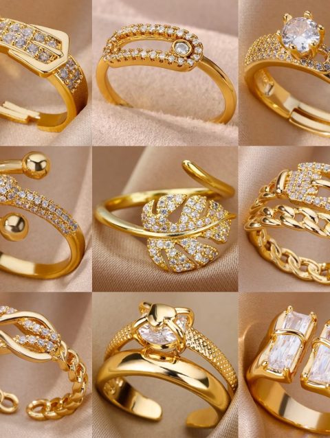 Gold Plated Stainless Steel Crystal Rings For Women Chain Geometry Zircon Finger Ring Jewelry Gift anillos mujer 2025 New Trendy