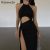 WhereMery Fashion Off Shoulder High-waist Backless Solid Long Dress Sexy Elegant Hollow Out Split Dresses Summer Women Vestidos