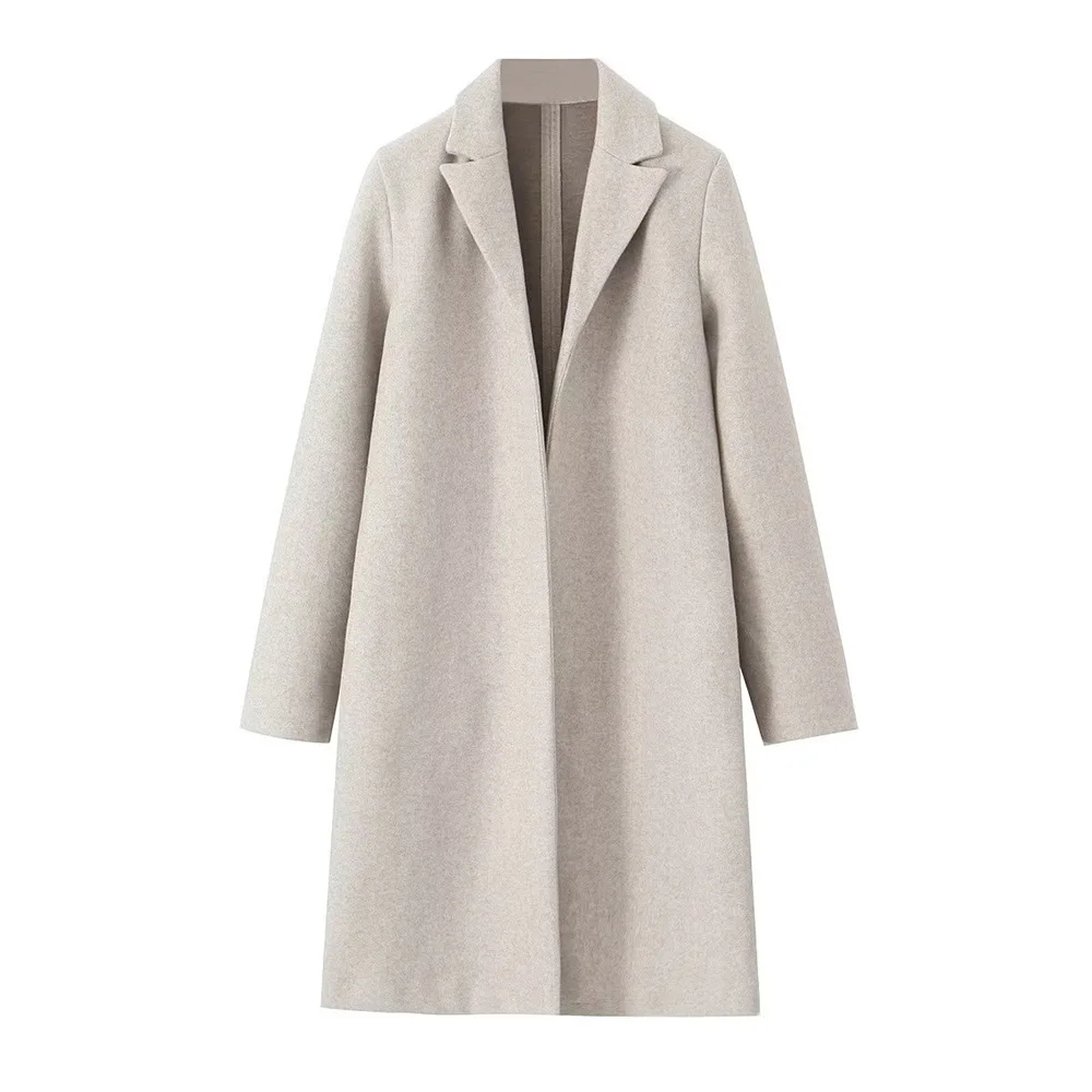 Willshela Women Fashion Solid Open Stitch Long Trench Coats Vintage V-Neck Full Sleeves Female Chic Lady Outfits