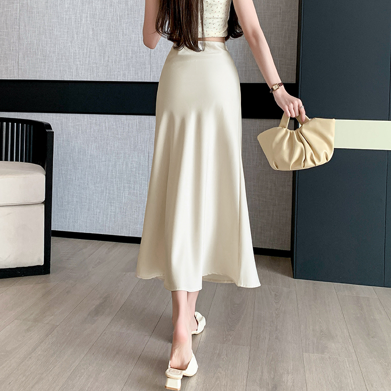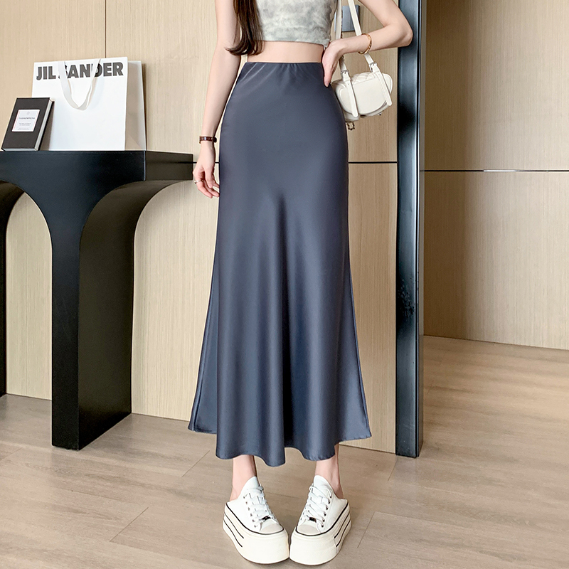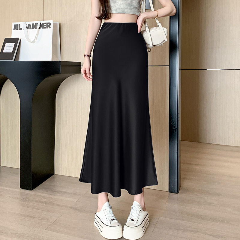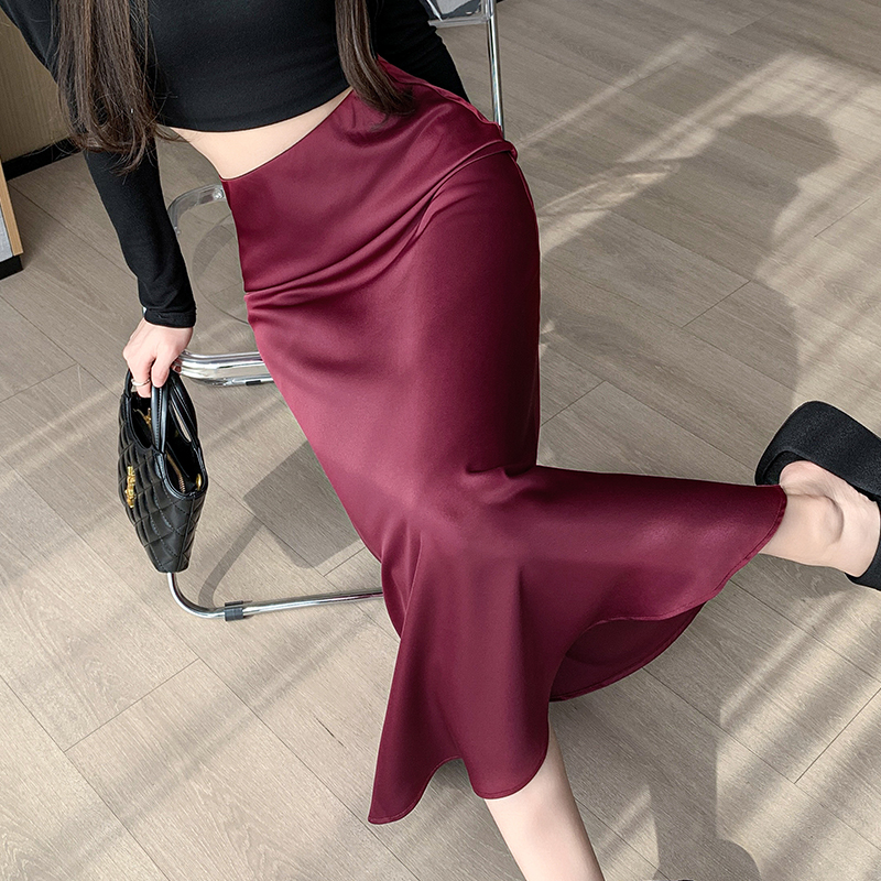 Wine Red Streetwear Summer Satin Trumpet Skirt For Women High Waist Casual Elegant Fashion Long Mermaid Skirts Female