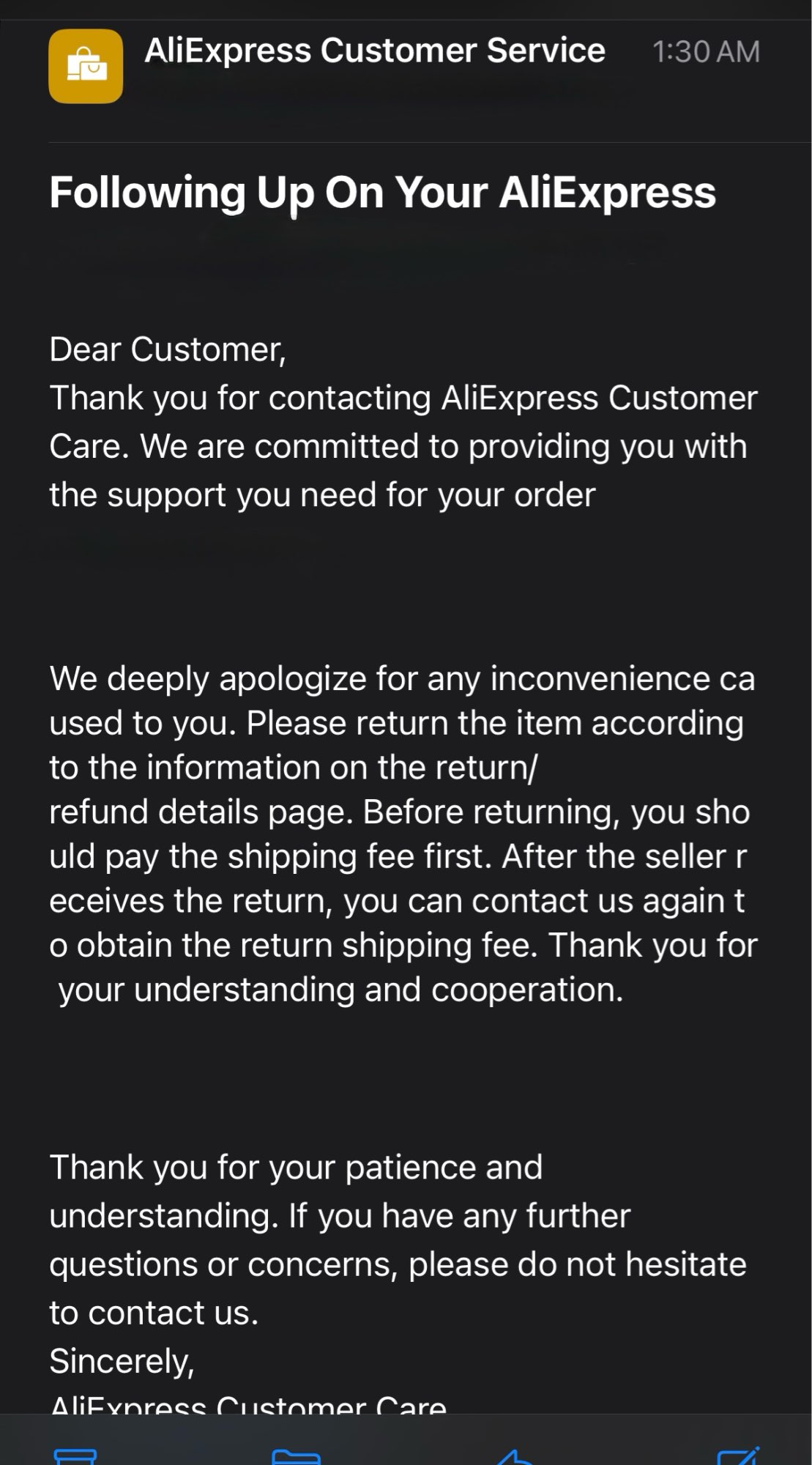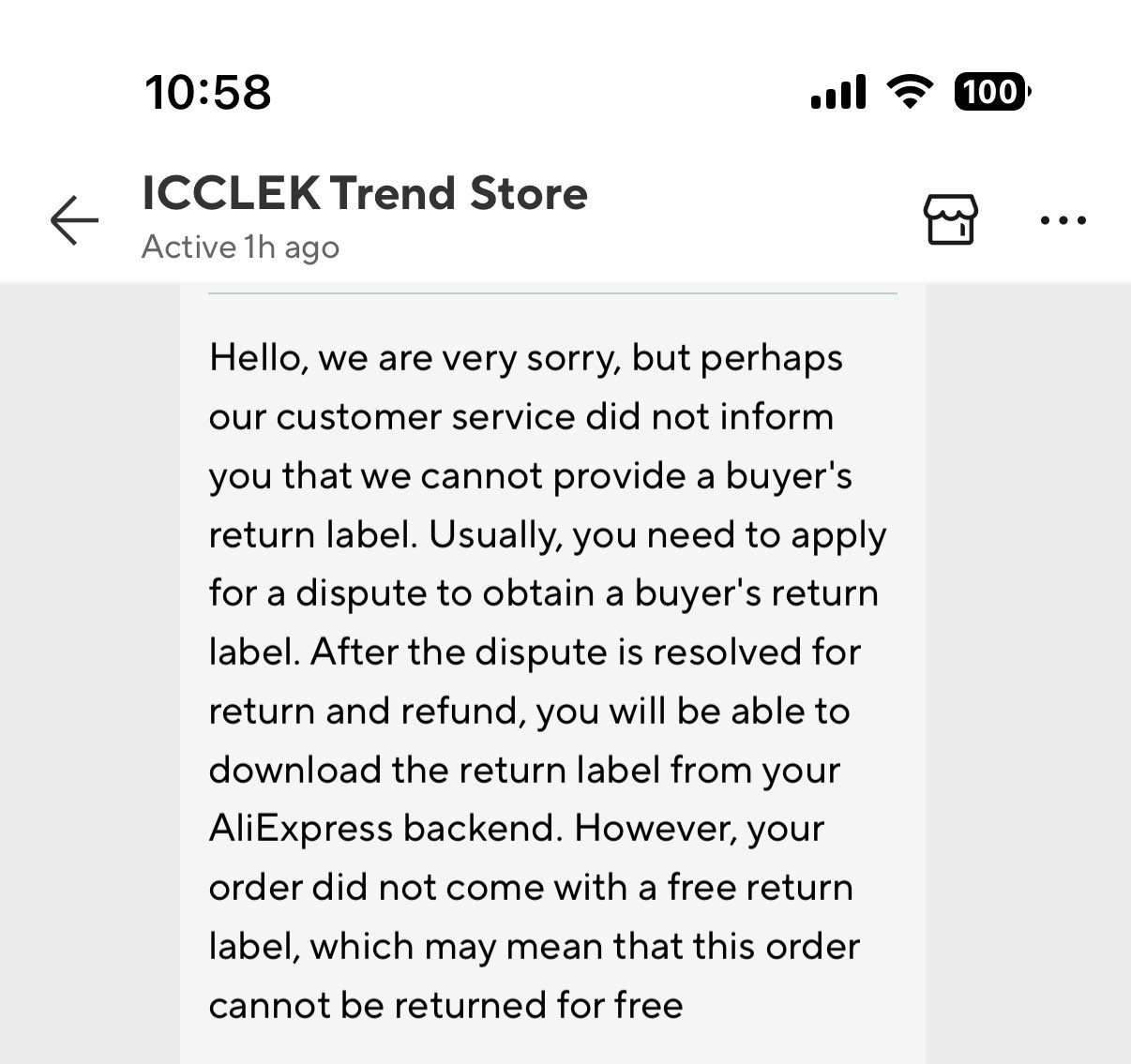 I rarely return items, but I have proof from AliExpress support and USPS showing the unreasonable cost. The back-and-forth between seller and support felt like gaslighting — wasting my time with no solution. Buyers beware: the sizing grid is inaccurate and the free return promise is not honored.