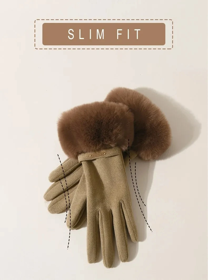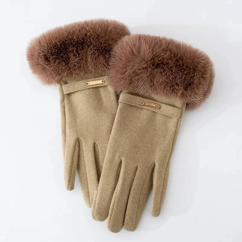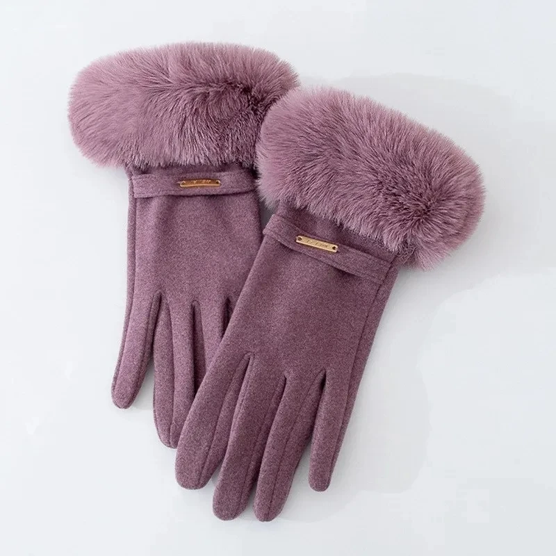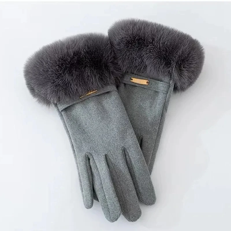 Winter Women Keep Warm Plus Velvet Touch Screen Thicken Plush Wrist Suede Gloves Fashion Personality Elegant Drive Cycling