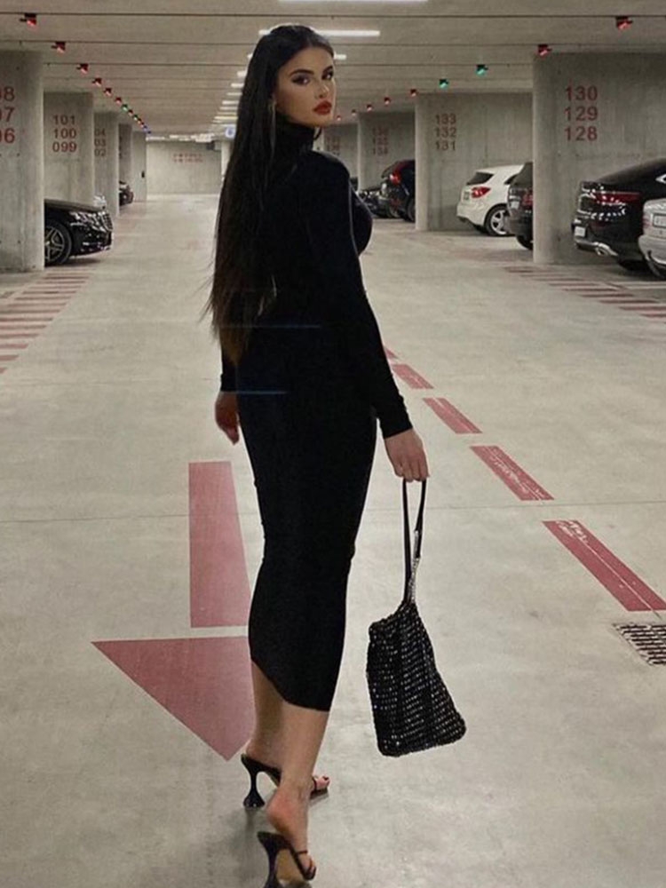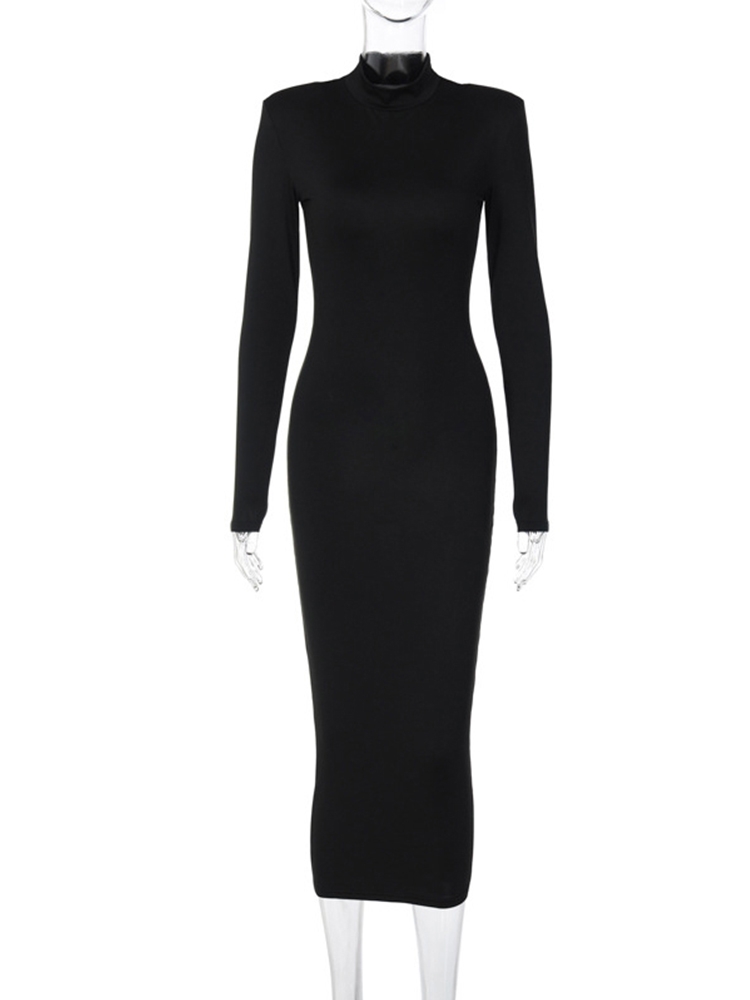 Women 2024 Spring Autumn Fashion Long Sleeve Streetwear Bodycon Black Midi Dress Wholesale Items For Business