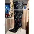 Pointy Metal Eyelet Long Boots Ladies Sexy Matte Leather High Heels Boots Streetwear Women Punk Side-zip Casual Outfit ShoesUSD 87.92-94.02/pair