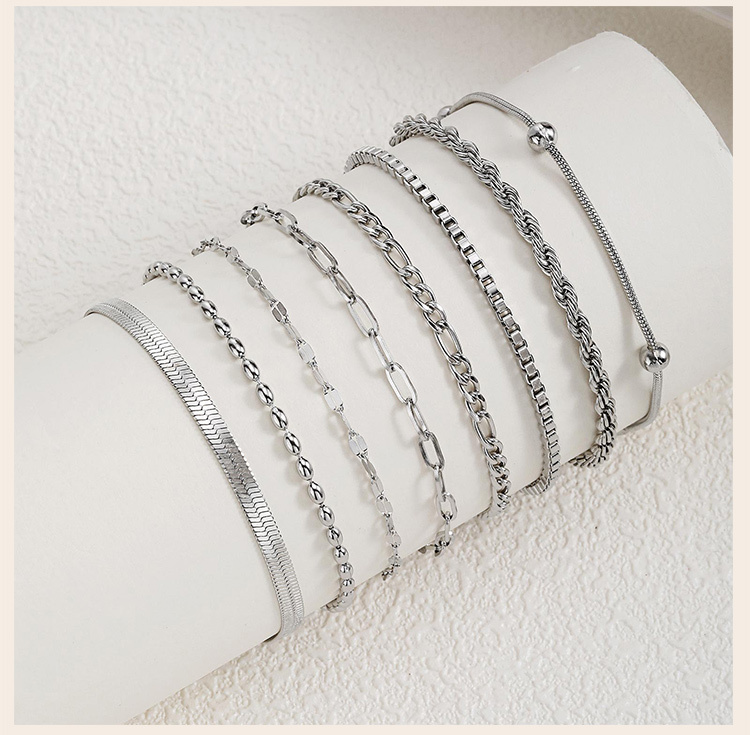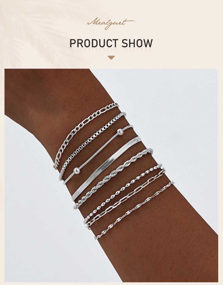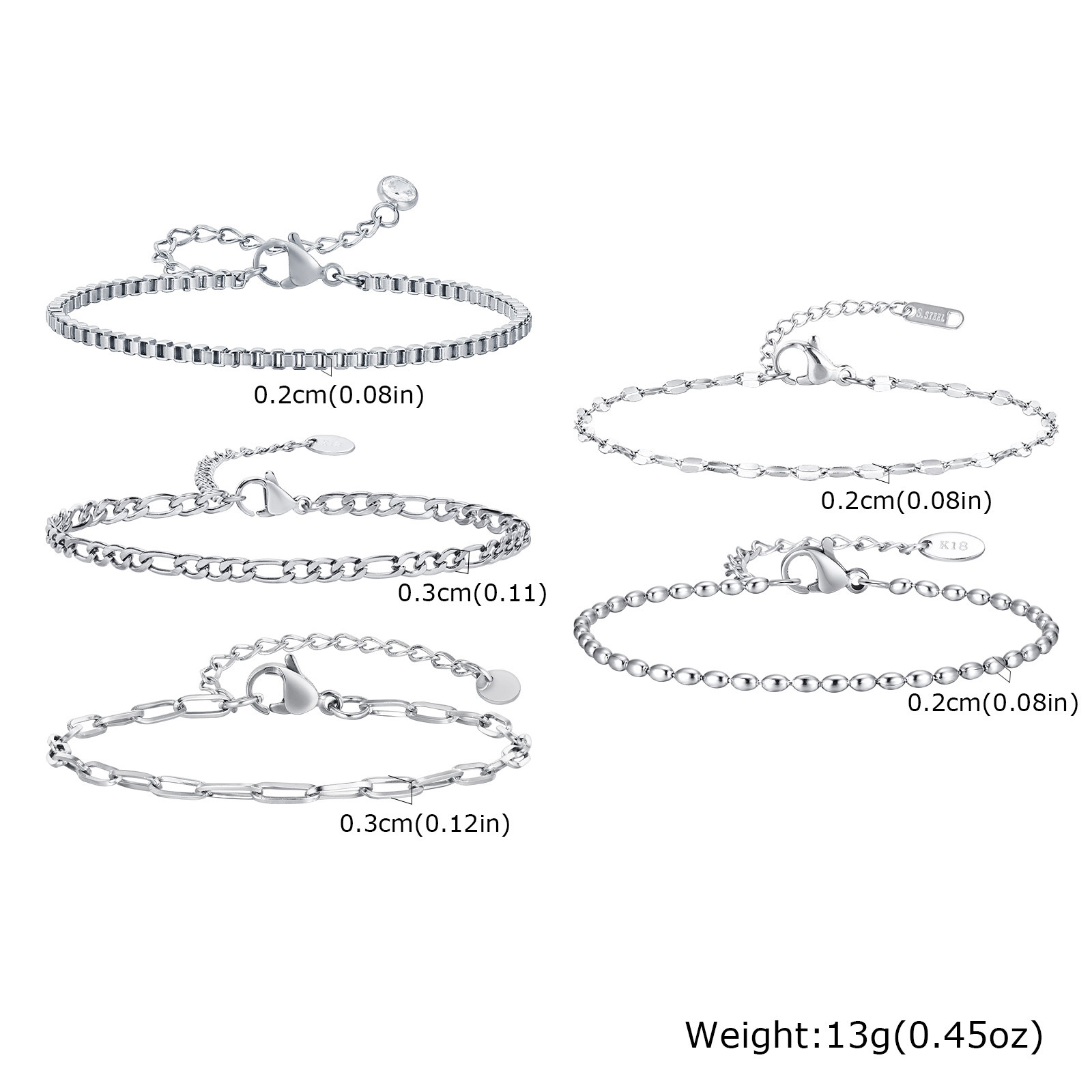 Women Chain Bracelet Silver Color, Stainless Steel Link Stackable Bracelets, Layered Fashion Accessories Gifts