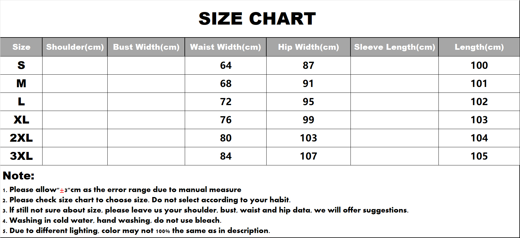 color, Size(US)Size Chart