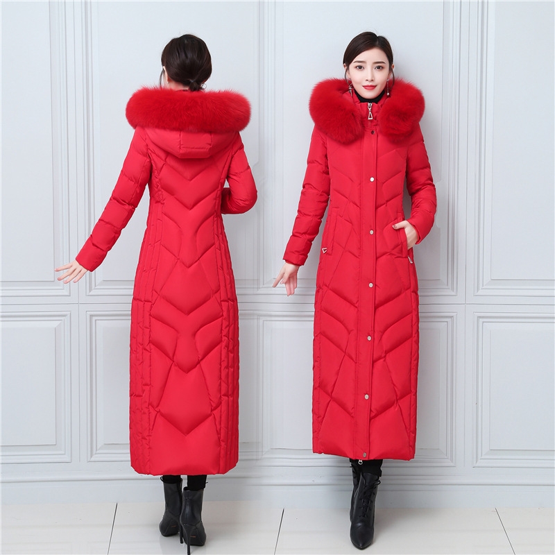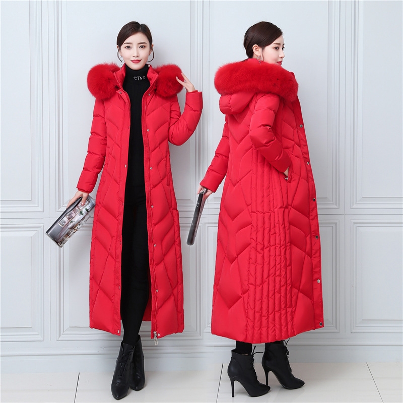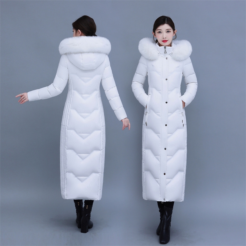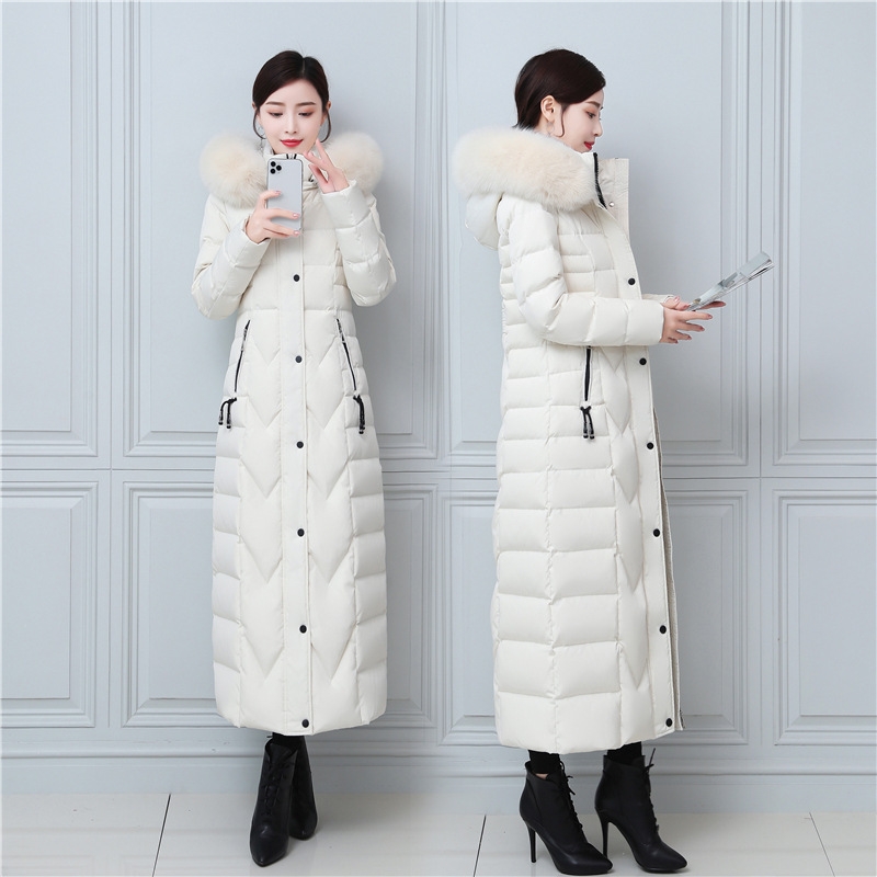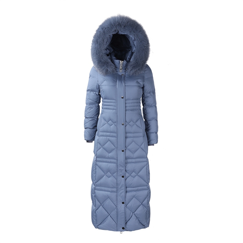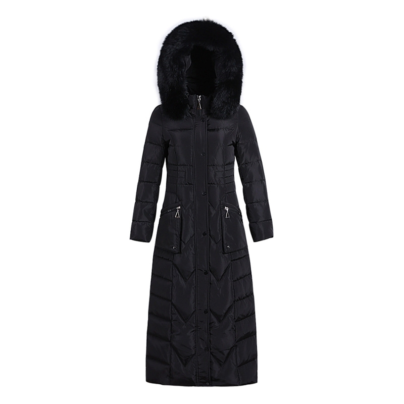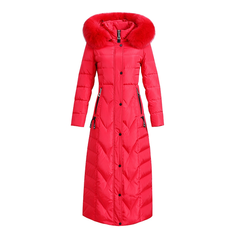 Women Down Coat Slim Fit Length 125cm Thickening Windproof Waterproof Detachable Fox Fur Collar X-Long Duck Down Jacket