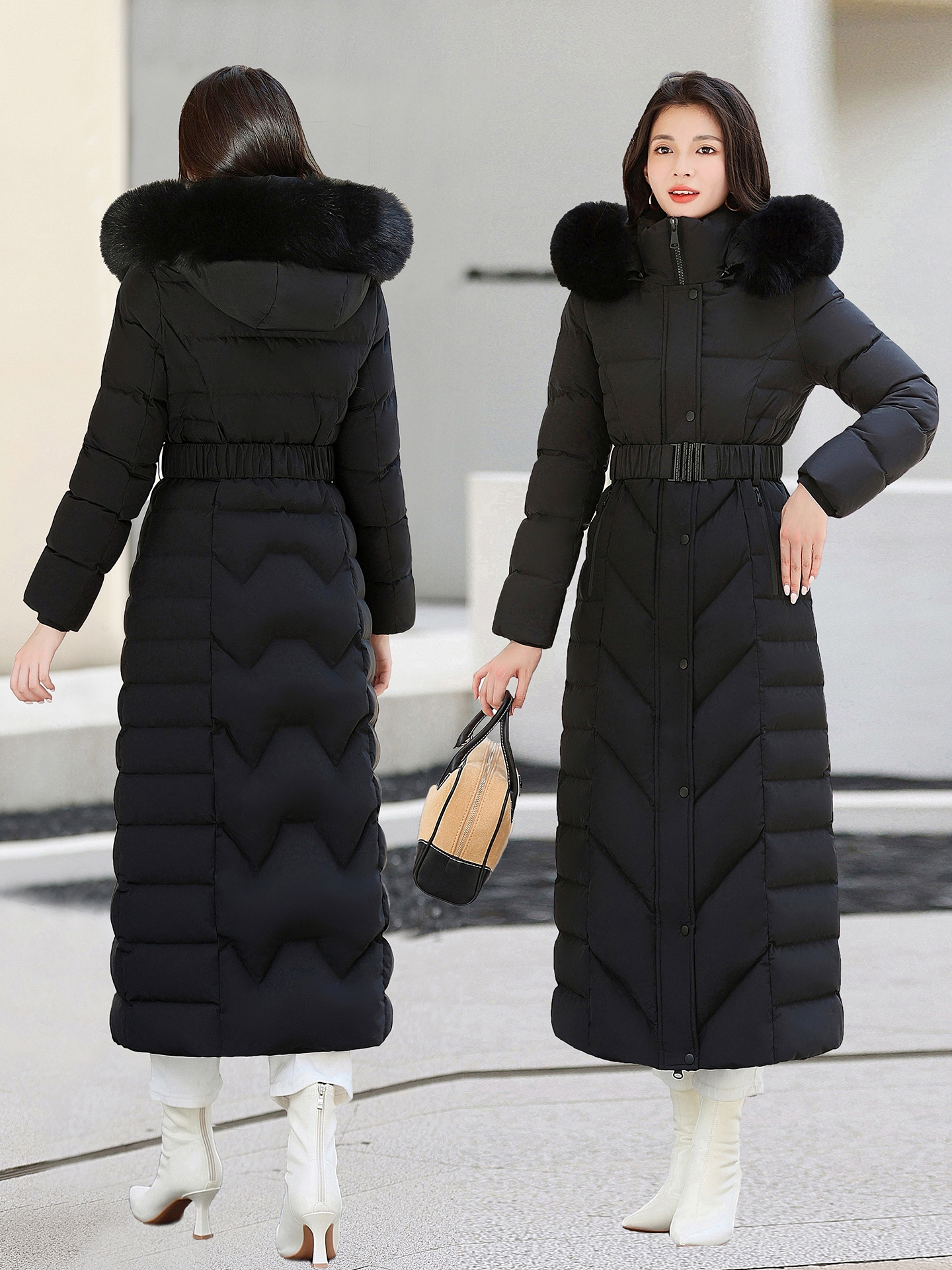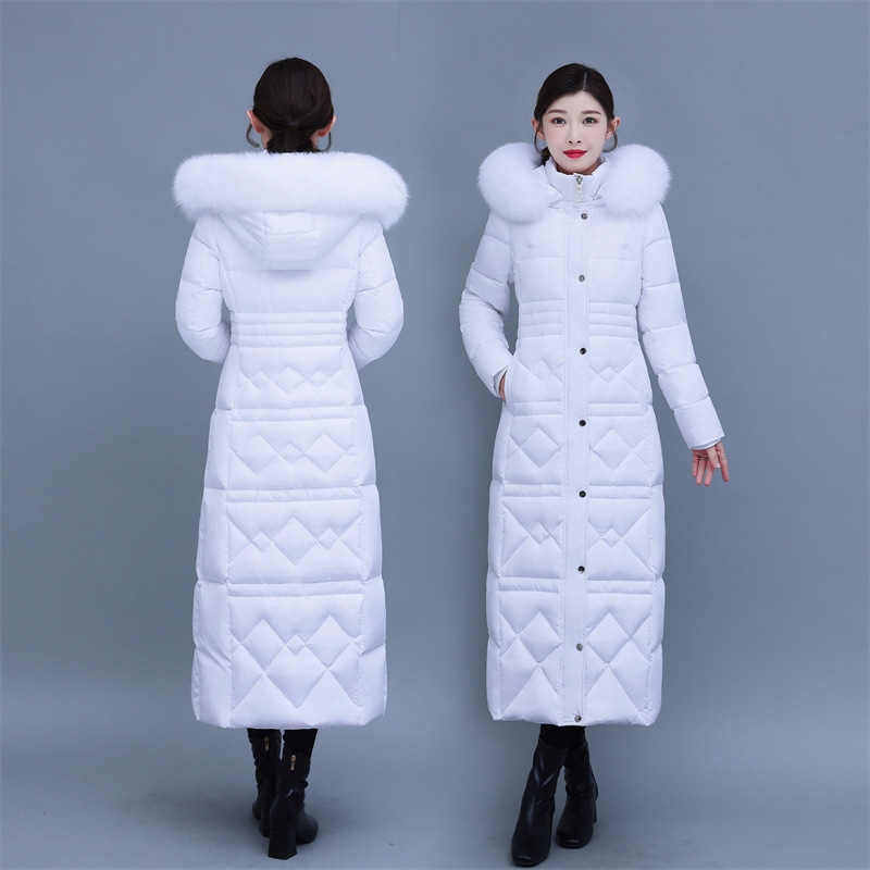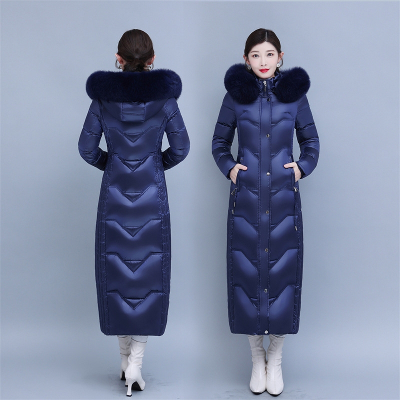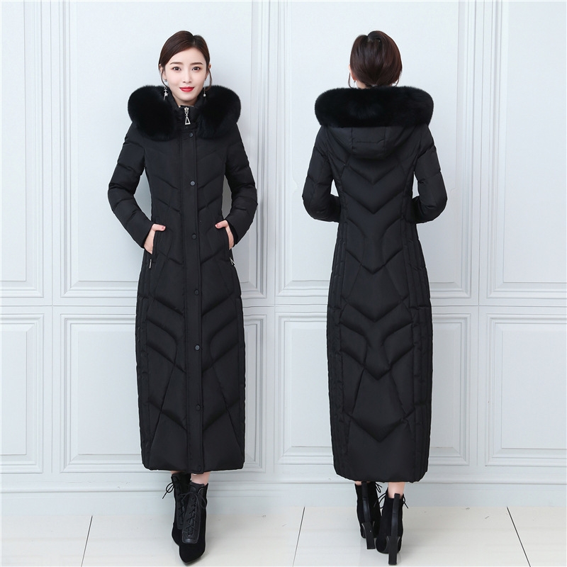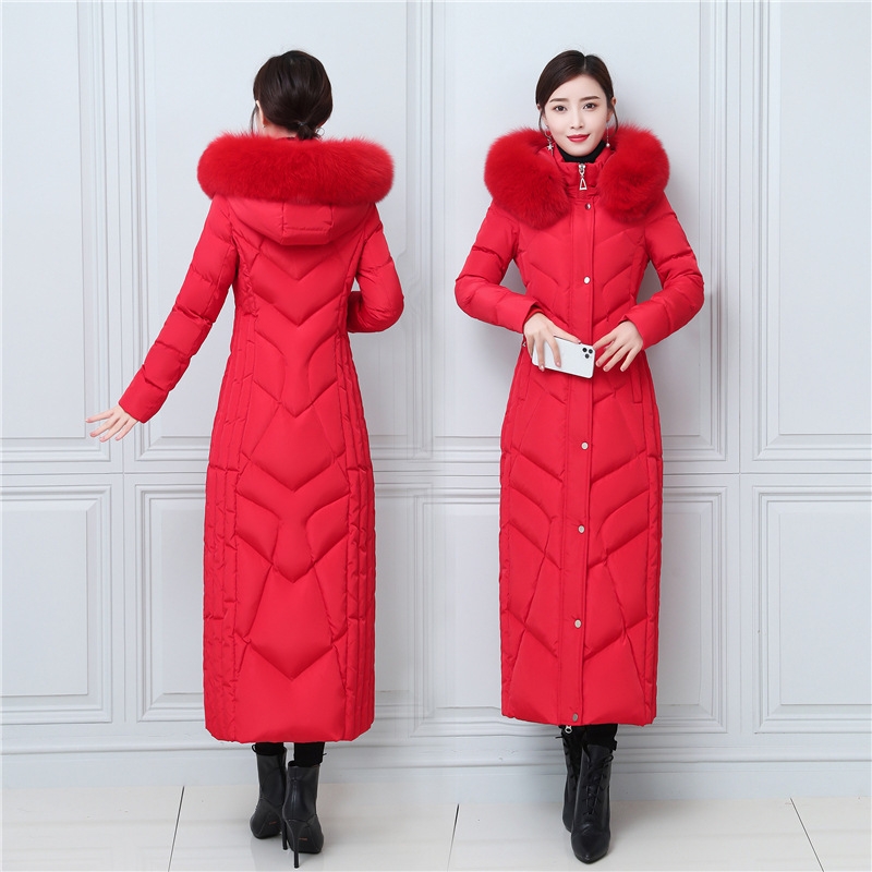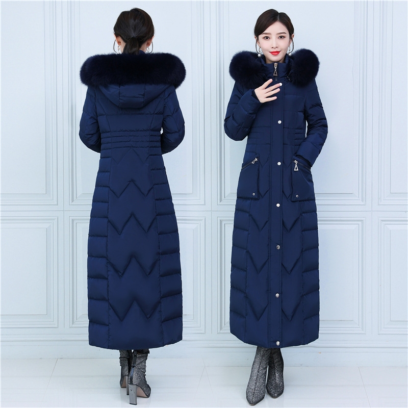 Women Down Coat Slim Fit Length 125cm Thickening Windproof Waterproof Detachable Fox Fur Collar X-Long Duck Down Jacket