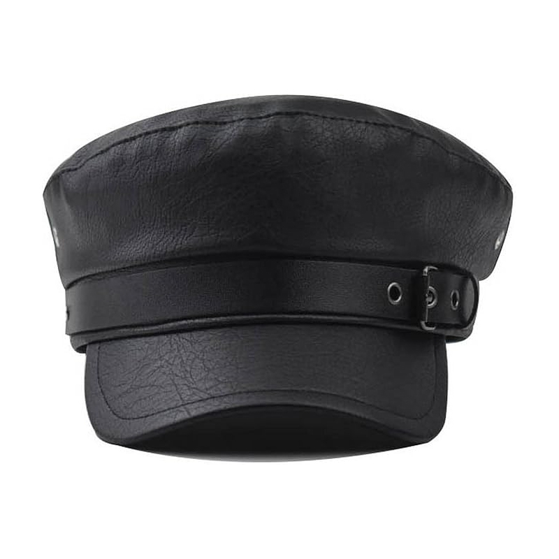 Women Fashion Newsboy Cap PU Leather Yacht Captain Sailor Visor Hat Newsboy Cabbie Baker Boy Peaked Beret Cap