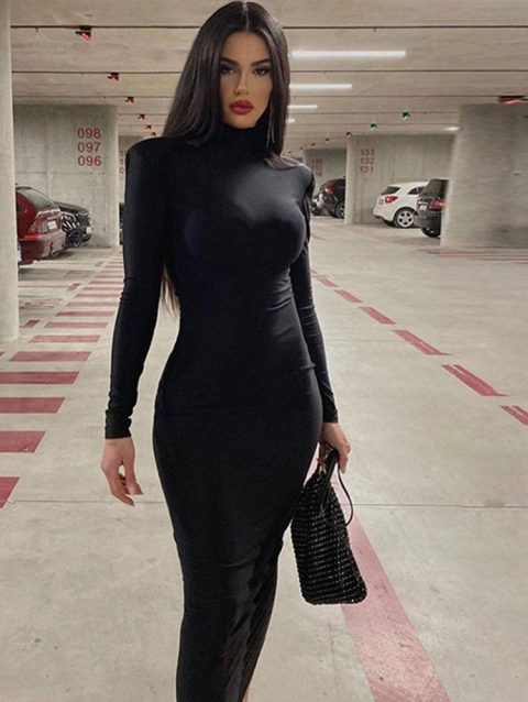 Sexy Luxury Evening Dress 2024 Urban Black V-Neck Long Sleeved Shiny Ruffled Bodycon Dress Spicy Girl Tight Fitting Midi Dresses