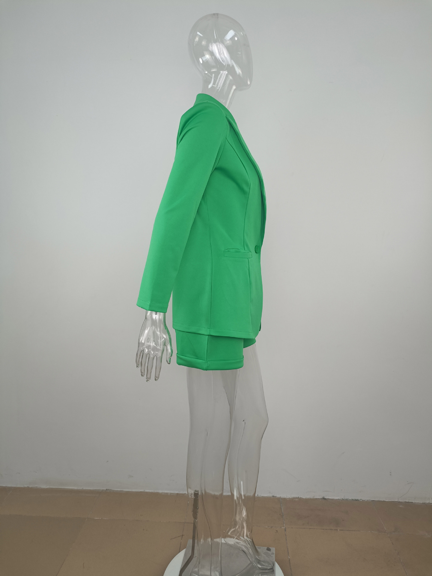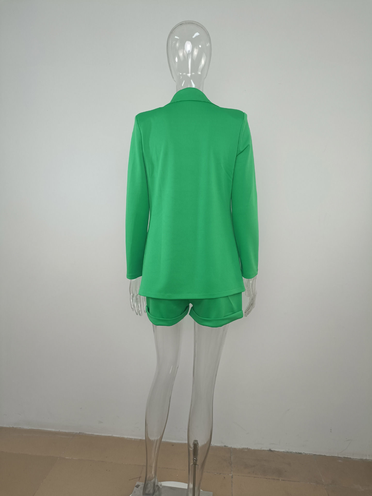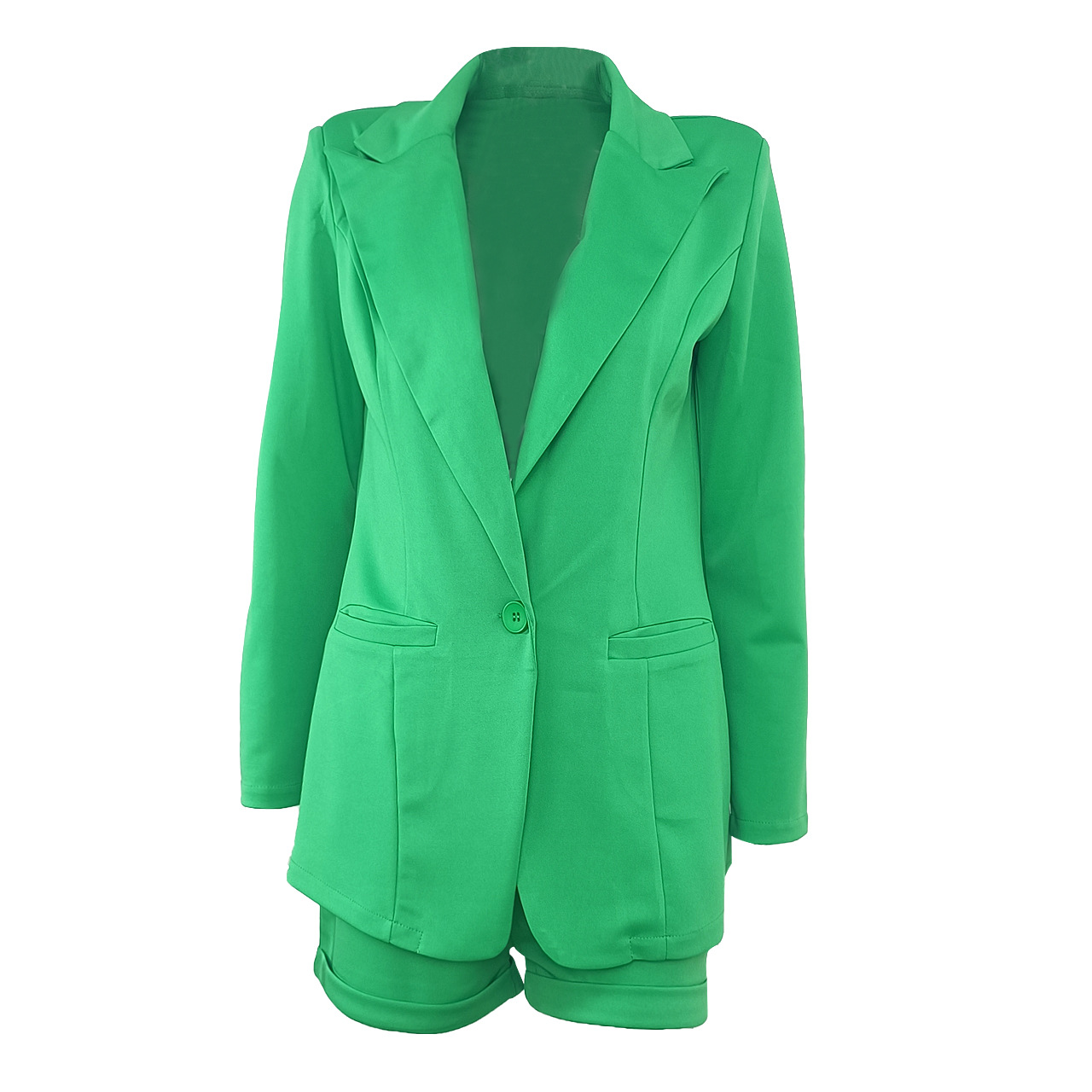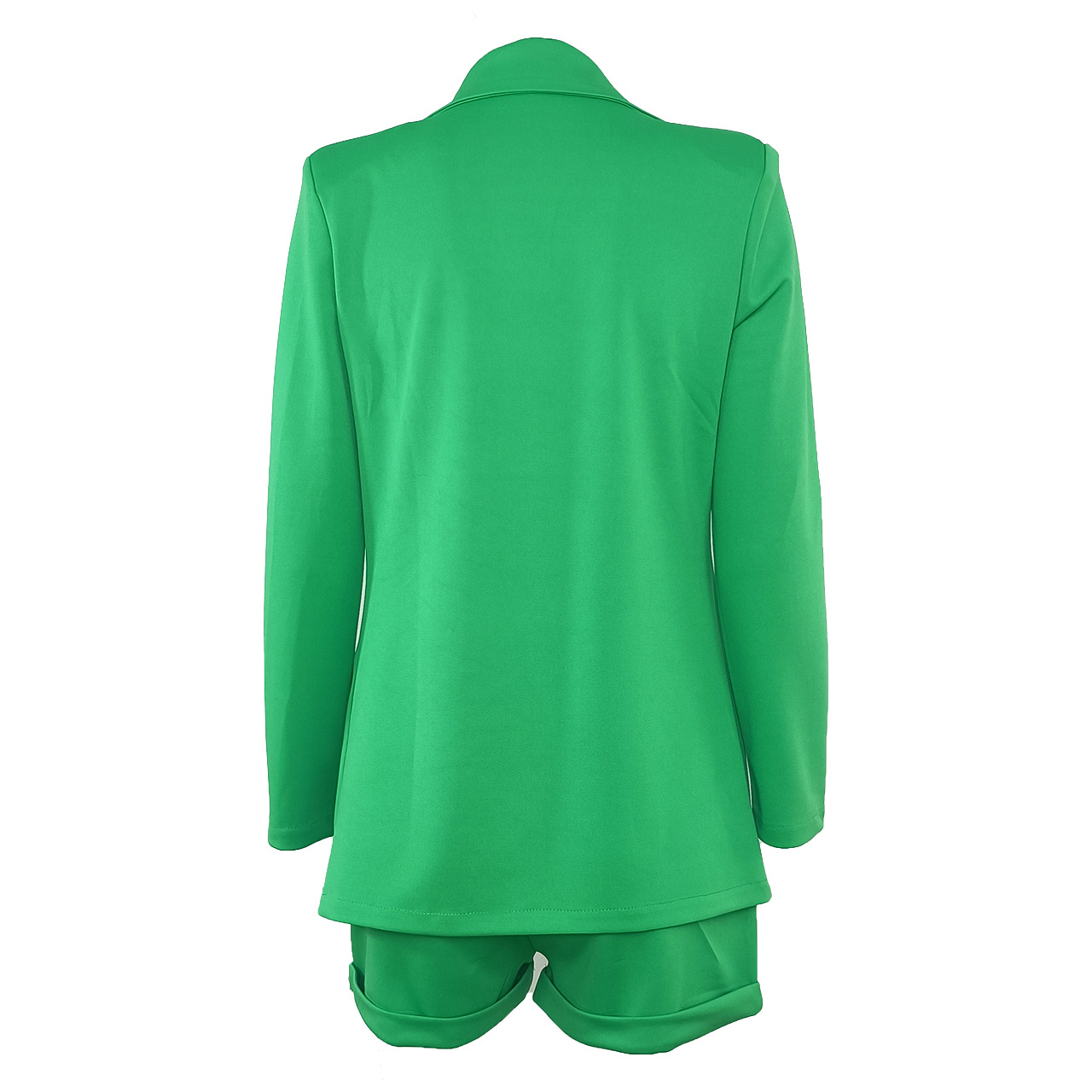 Women Fashion Two Pieces Blazer Suit Formal Long Sleeve Jacket + Short Trousers Elegant Office Ladies Business Suits