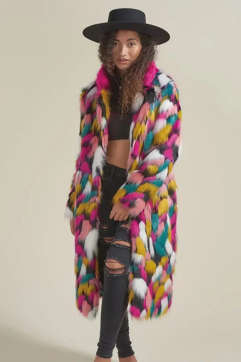 2 reviews for Women Faux Fur Long Coat Rainbow Colorful Fashion Faux Fox Fur Autumn Winter Lady Casual Street Warm Quality 2023 Cloth
