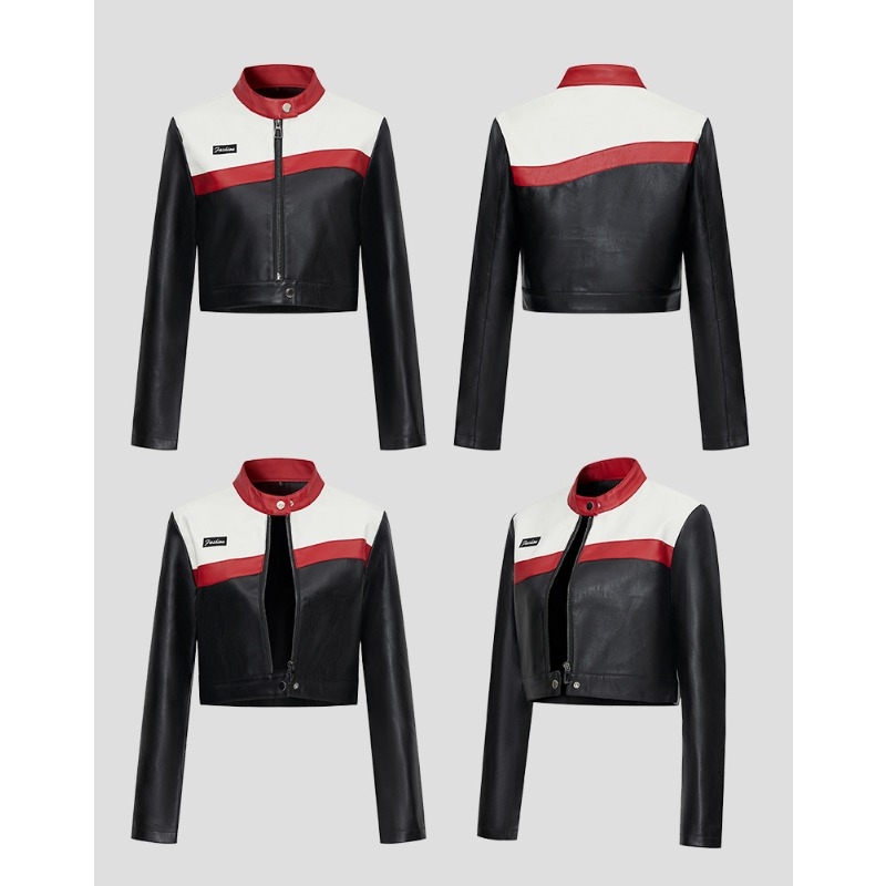 Women Faux Leather Jackets Patchwork Motorcycle Suit Aviator Jacket Short Version Coat Leather Jacket Handsome Oversized Skinny