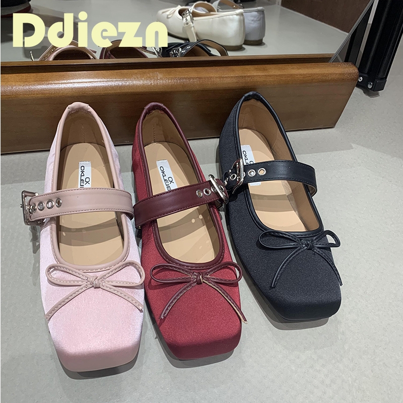 Women Flat Shoes Fashion Buckle Strap Footwear Lolita Style Casual Shallow Mary Janes Butterfly-knot Ladies Ballet Flats Shoes
