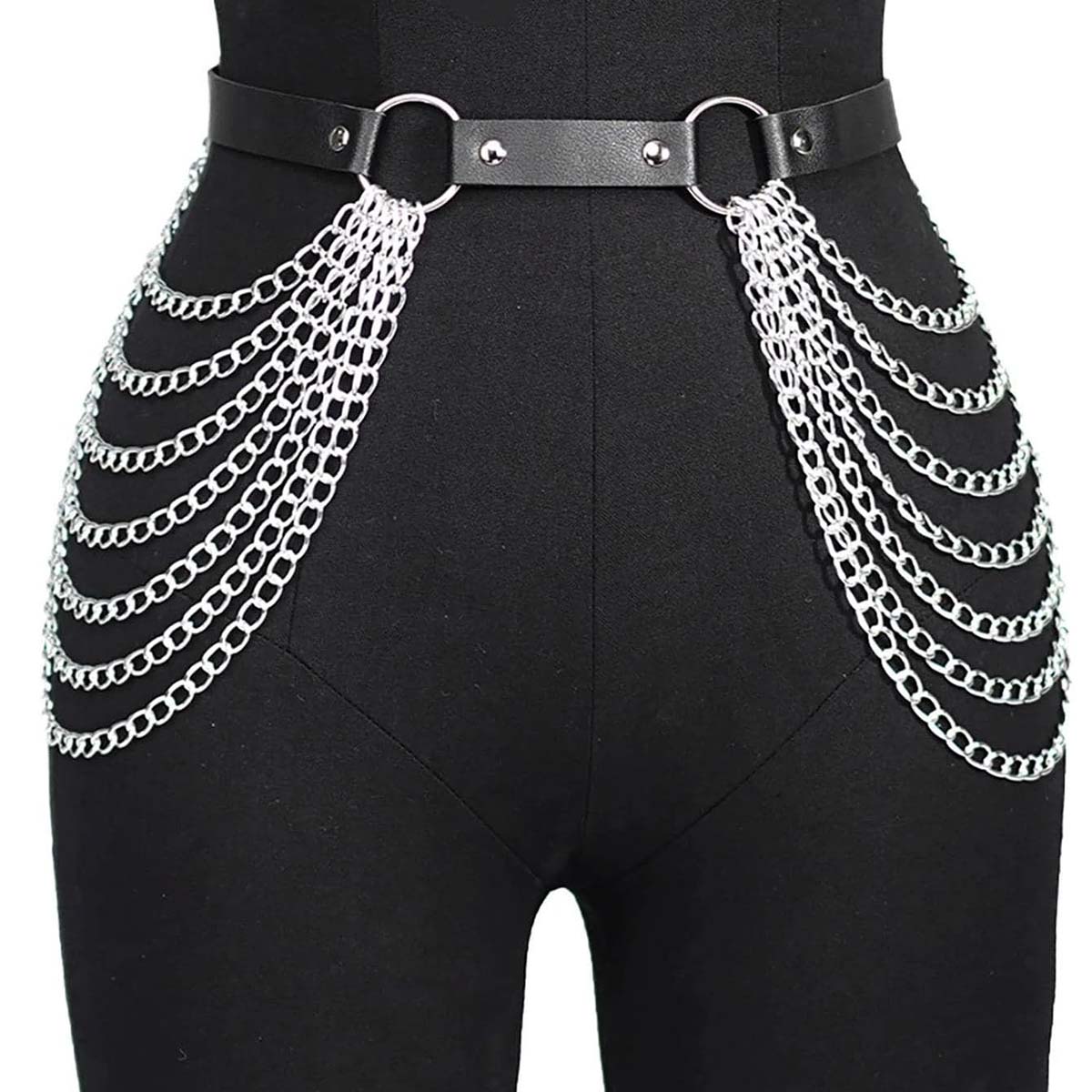 Women Goth harness Leg Harness Pu Leather Studded Decor Harness Adjustable Fetish Clothing Women Goth Harness Bondage lingerie