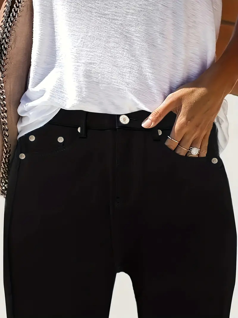 Women Jeans Plus Size High WaistedBlack Slim Fit with Button Detail Jeans Stylish Women’s Bottoms Trending Now