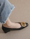 Woman Spring Casual Square Toe Low Soft Soled Shoes Lolita Ballerina Red Flats Female Elegant French Retro Buckle Mary Janes