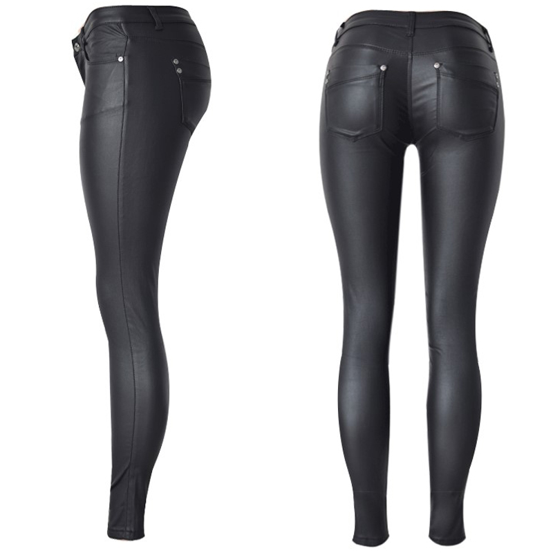 Women Low Waist Faux Pu Leather Pants Punk Gothic Lady Skinny Pencil Trousers Sexy Stretch Push Up Legging Slim Fit Street 2022