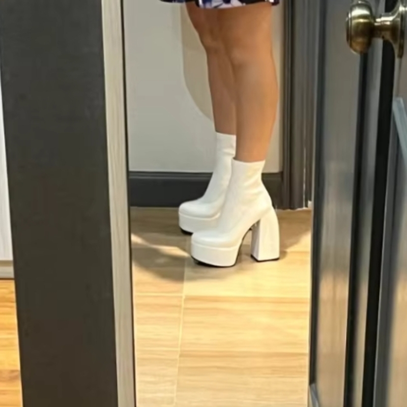 Designer Ankle Boots for Women Brand Woman Heels Platform Chunky Blue Cowboy Boots Solid Women Shoes New Sexy High Heels