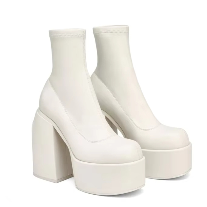 Modern Boots Women Platform Heels Round Toe Leather Boot Chunky Heels Zipper Designer Block Heel Shoes Fashion Girls Casual Shoe