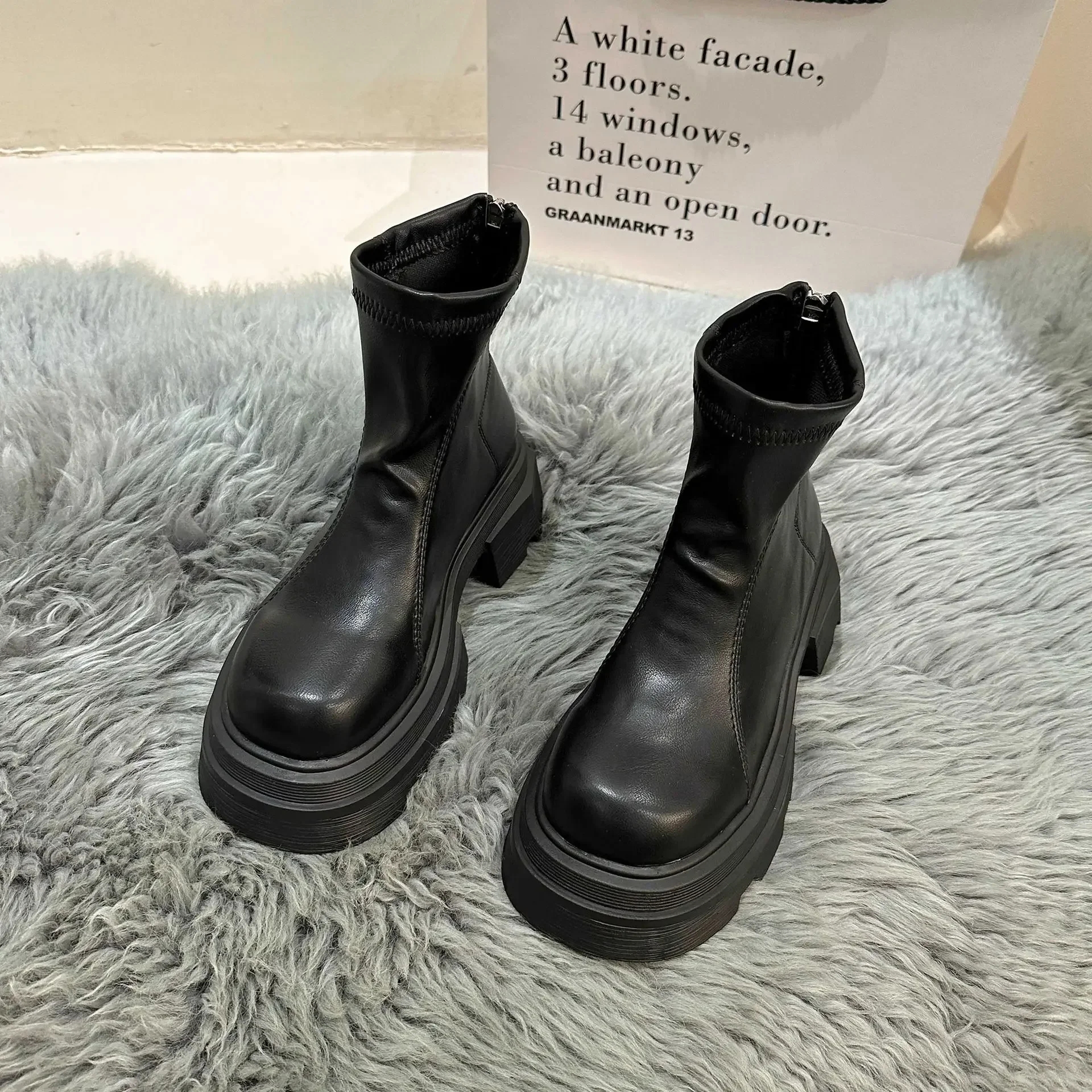 Women Platform Ankle Boots Fashion Ladies Thick Sole Round Toe Ankle Boots Short Boots Winter Motorcycle Boot Bottine 2024