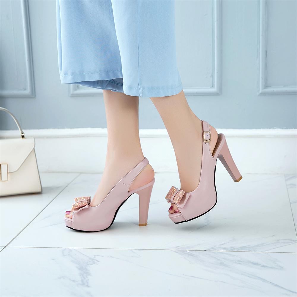 Women Platform High Heels 2025 Summer Fashion Bow Peep Toe Slingbacks Ladies White Pink Black Bride Wedding Shoes Party Pumps