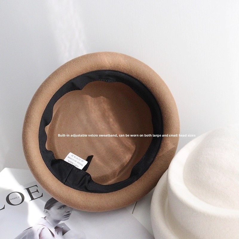 Women Round Concave Top Wool Fedoras British Retro Temperament Felt Beret Lady Fashion Painter Hat Elegant Trend Pillbox Hat