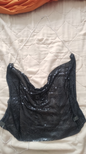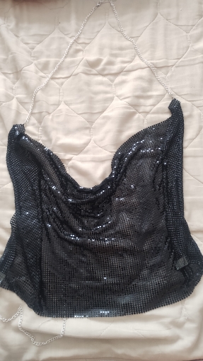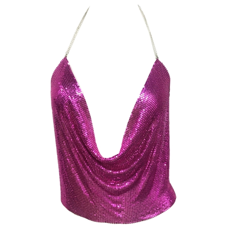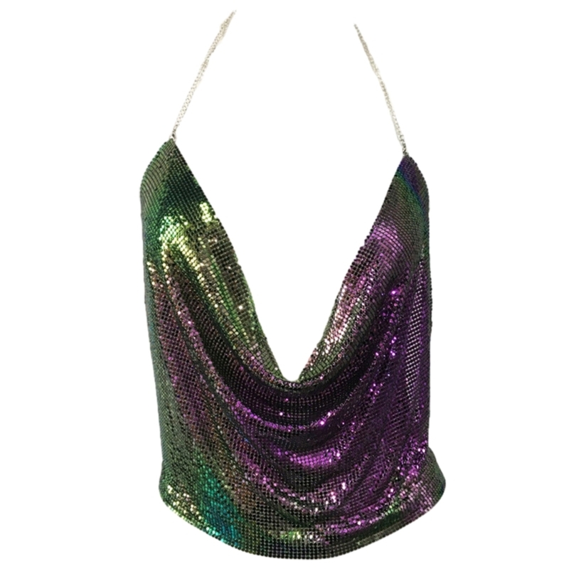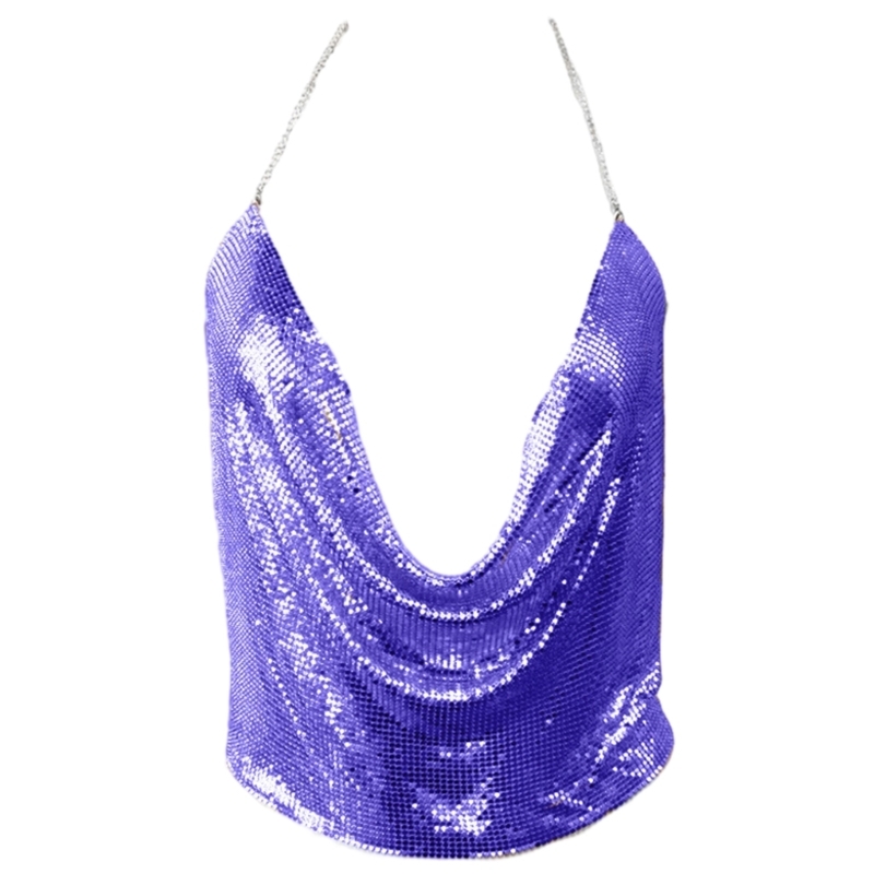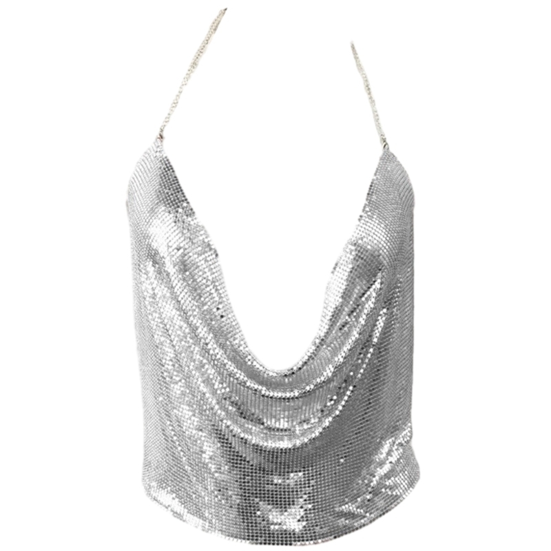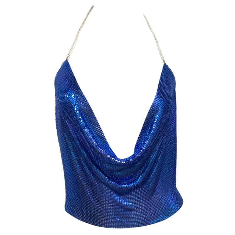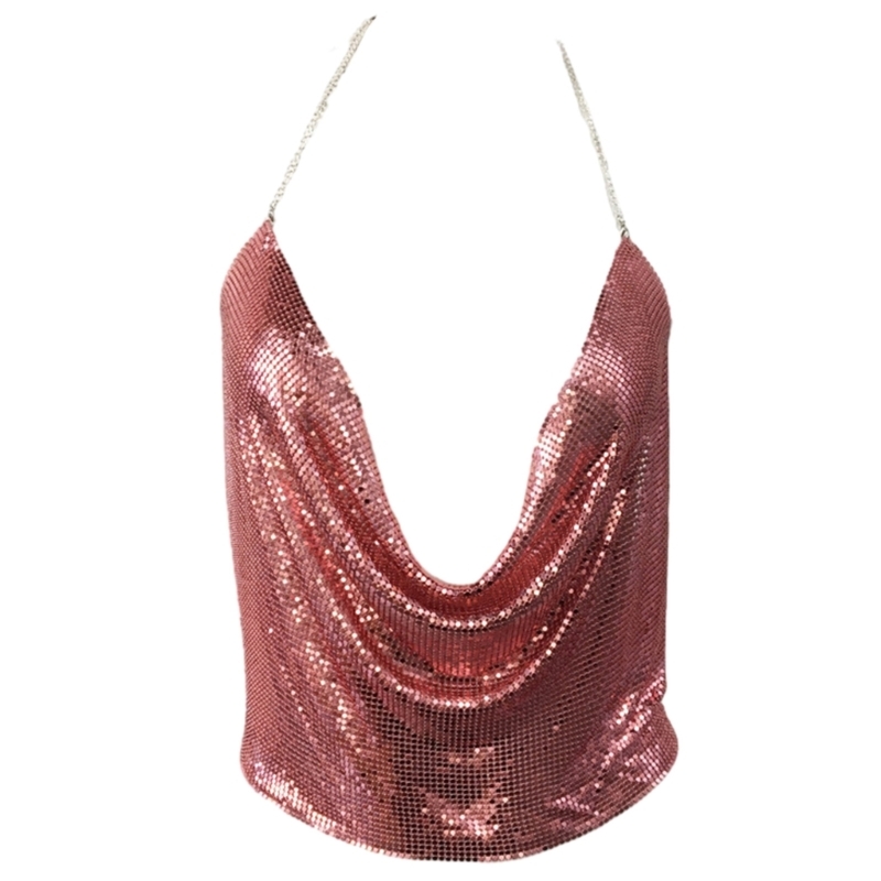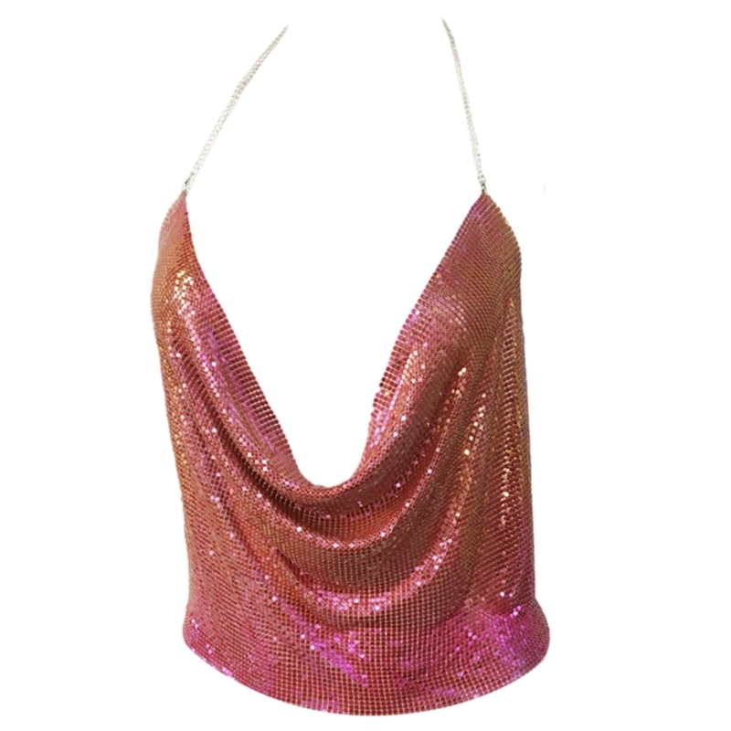 2 reviews for Women Sexy Glitter Sequins Crop Top Halter Cowl Deep V-Neck Backless Camisole Chain for Nightclub Party Outfit