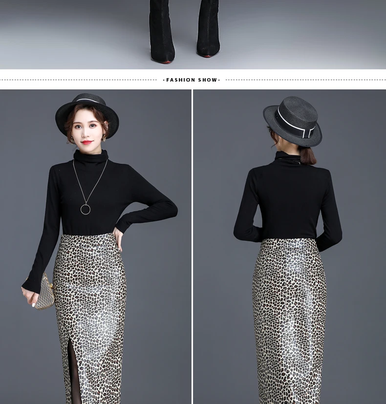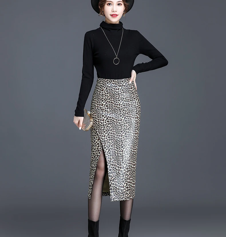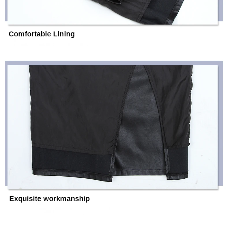 Women Slim Black PU Leather Bodycon Pencil Skirt Autumn Winter High Waist Casual Female Streetwear Sexy Mid-long Skirts