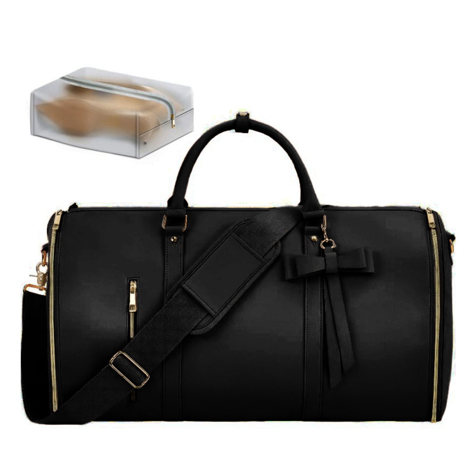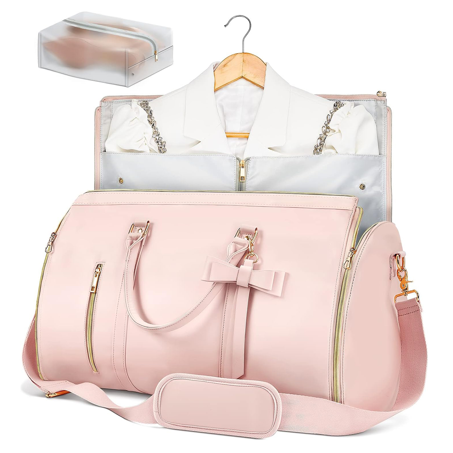 Women Trendy Travel PU Leather Suit Garment Bags Storage Duffle Tote Bags with Butterfly Tie